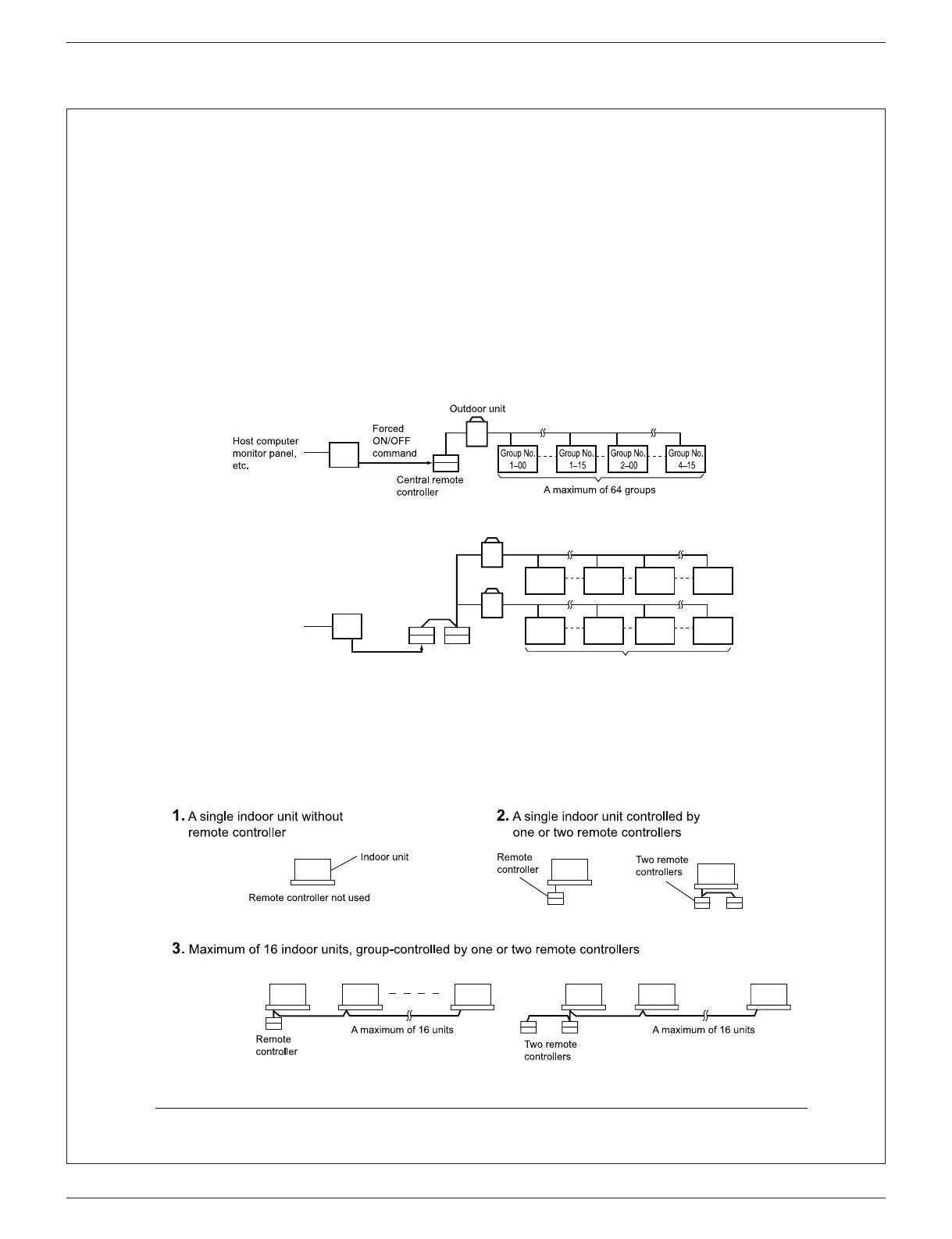 Using two central remote controllers allows monitoring and controlling of up to 128 indoor unit groups.