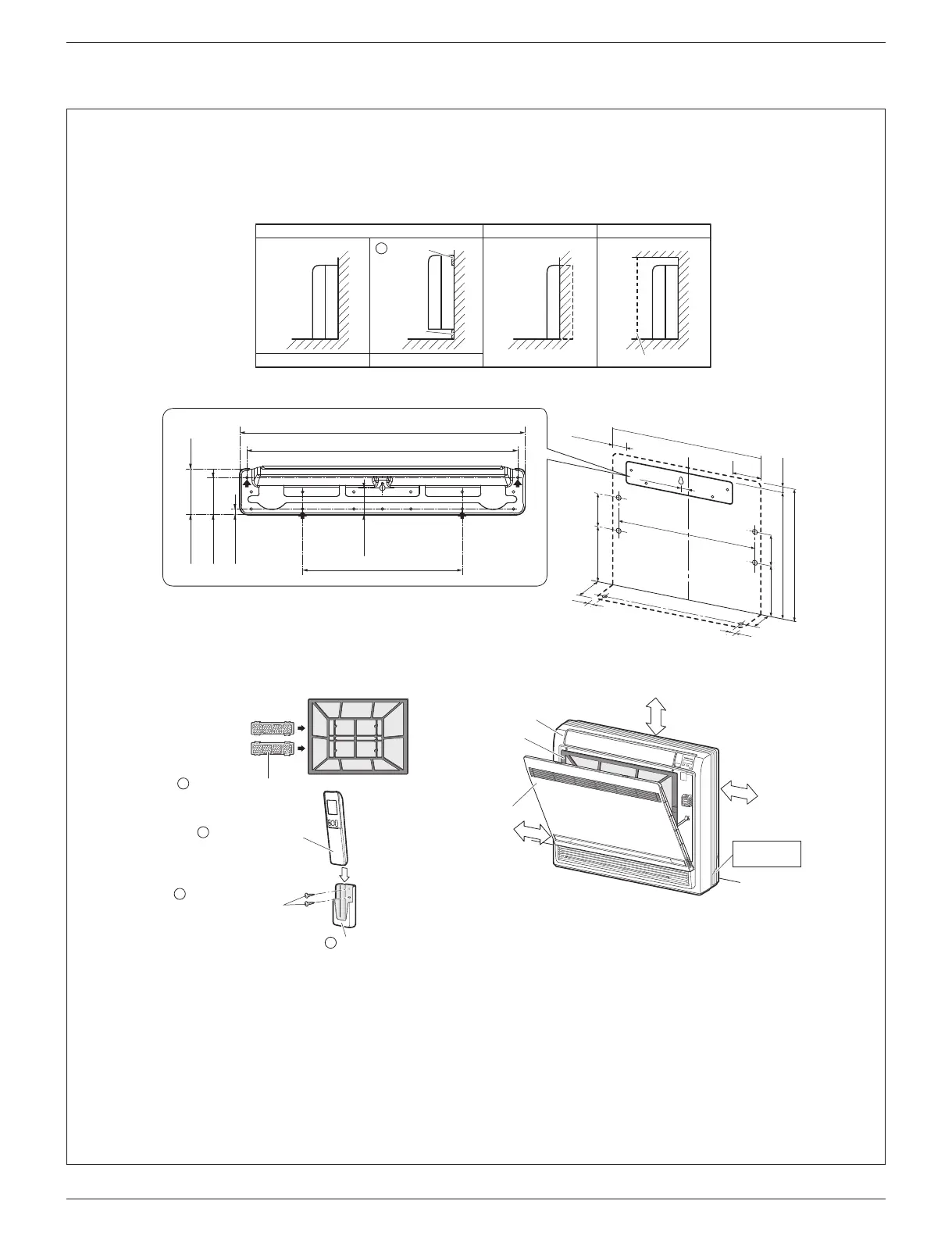 • The indoor unit may be mounted in any of the 3 styles shown here.