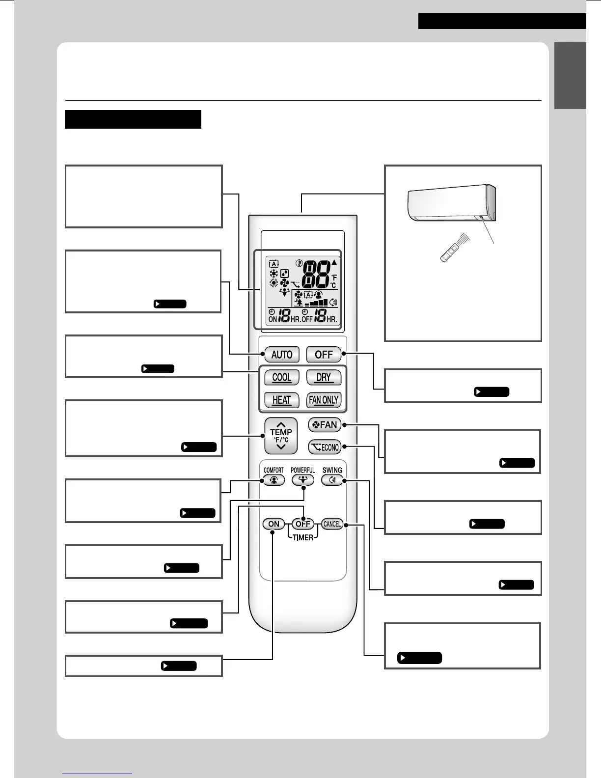 • Starts the COOL, DRY, HEAT or FAN
