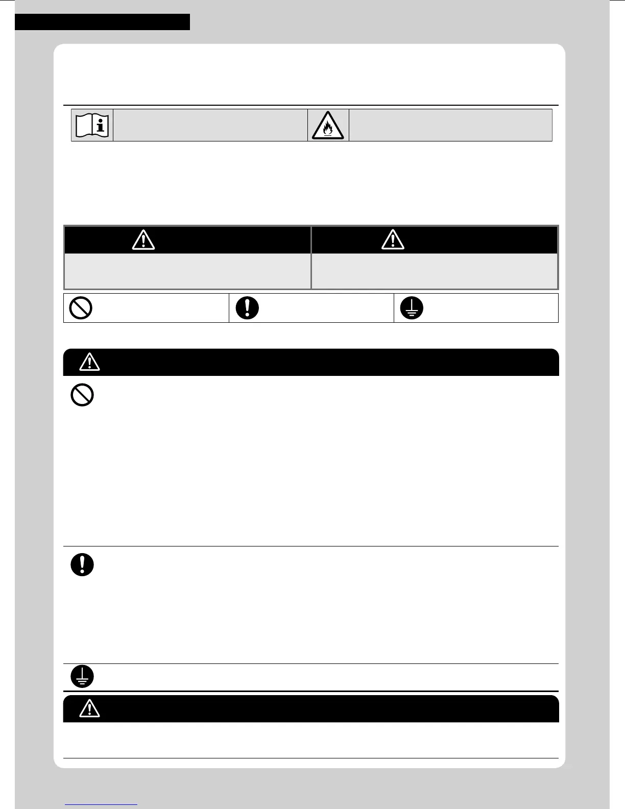• Beware of fi re in case of refrigerant leakage. If the air conditioner is not operating correctly, i.e. not generating cool or