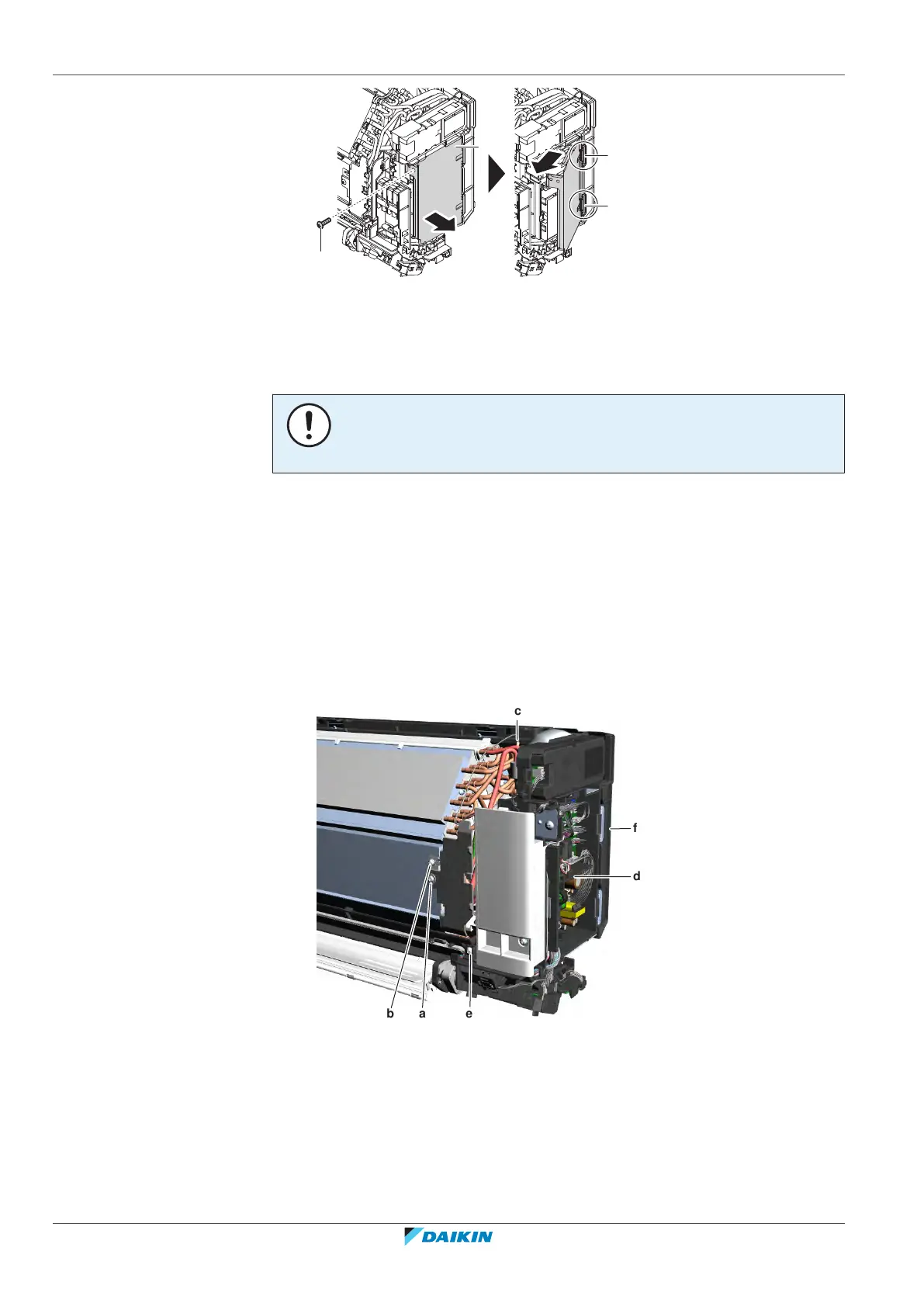 6 Remove the screw and remove the switch box from the indoor unit.