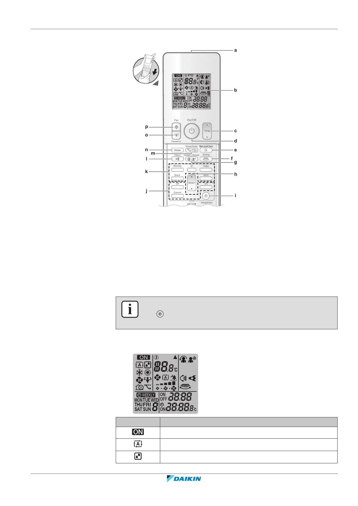 Daikin FTXA35B2V1BS - Components: User Interface; Status: User Interface LCD