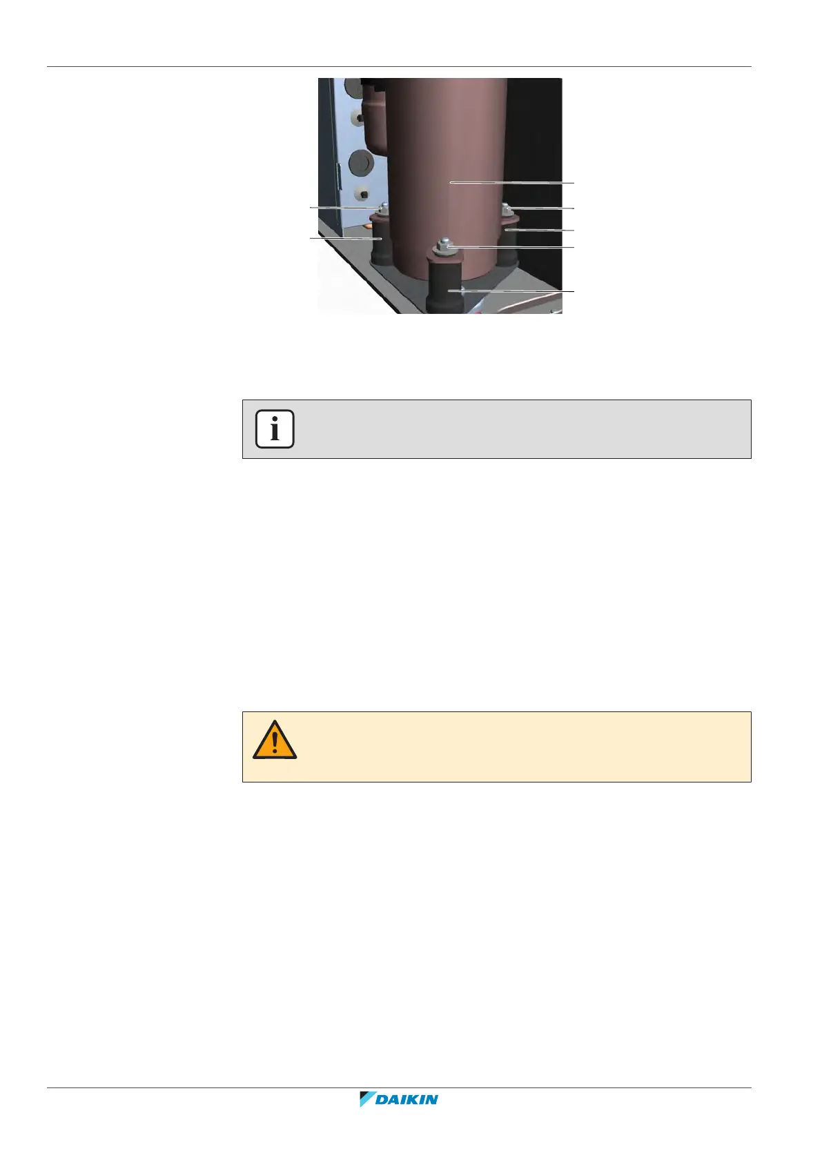 6 Install and tighten the bolts and nuts to fix the compressor to the dampers.