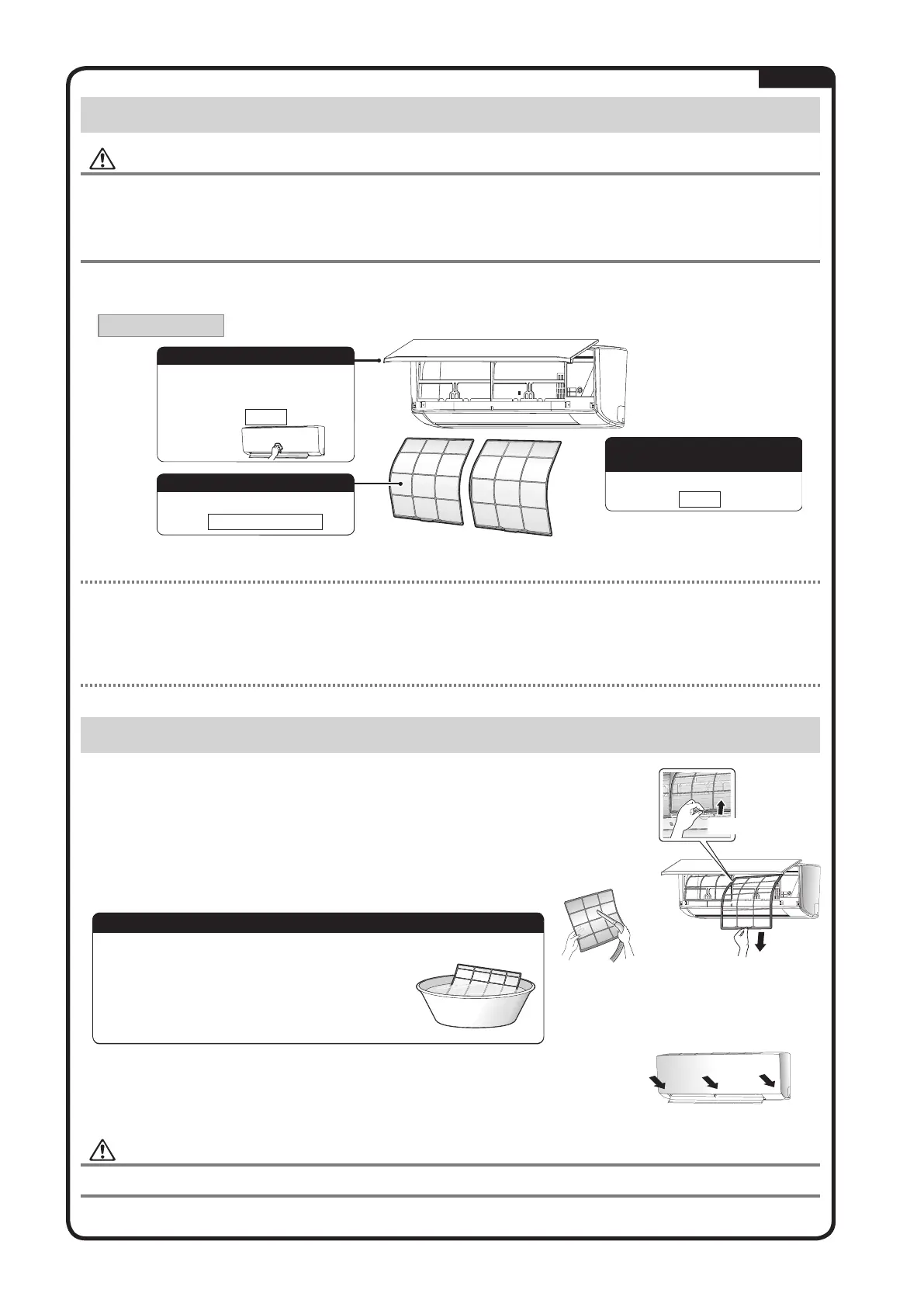 • Wash the air fi lters with neutral detergent
