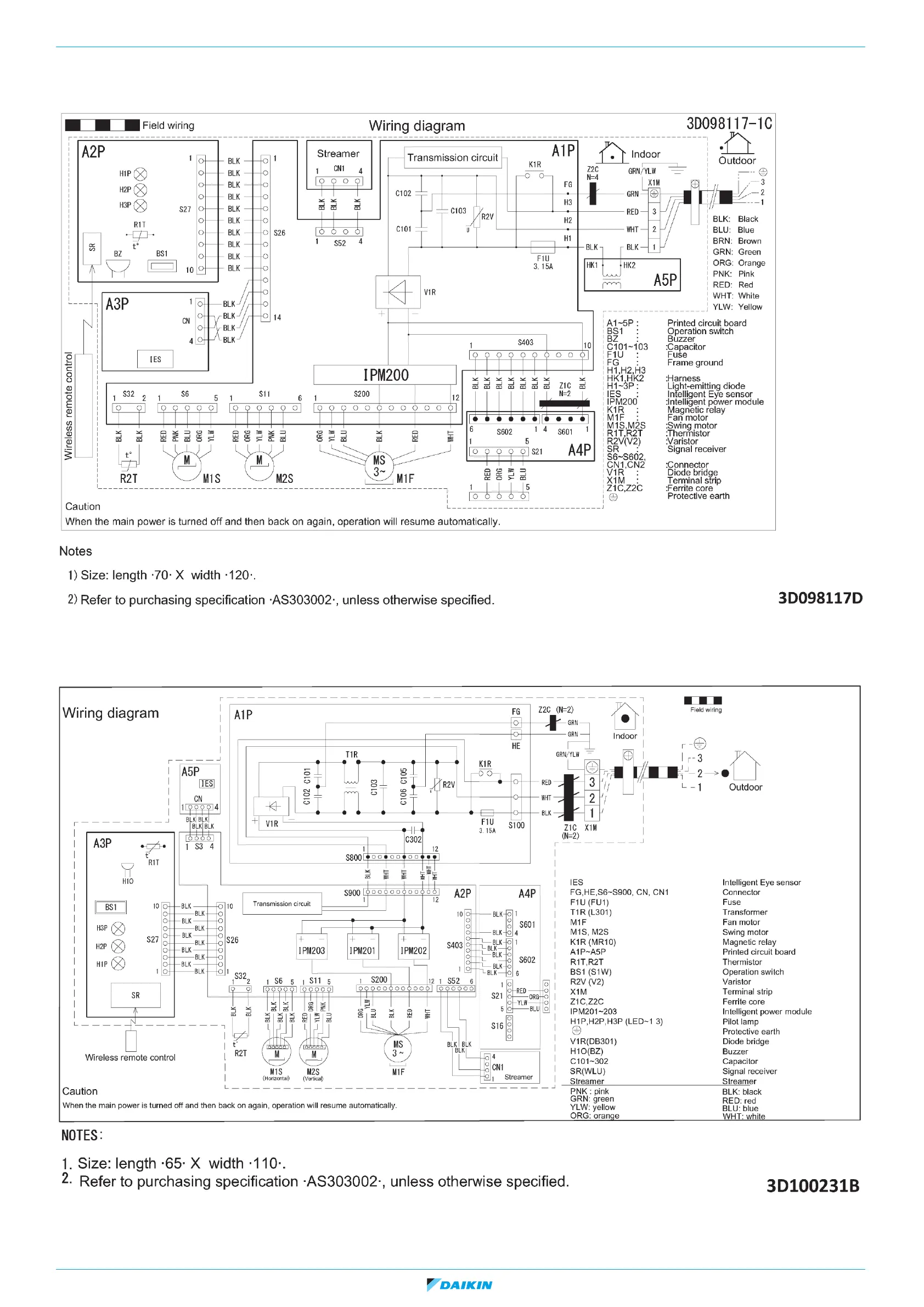 Figure 5-11: Wiring diagram - indoor unit FTXM50-71M, FTXM50-71N, ATXM50M, ATXM50N