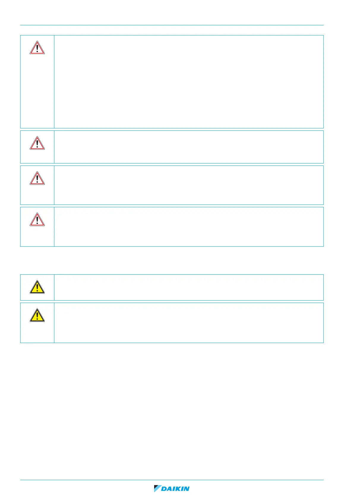 • NEVER squeeze bundled cables and make sure they do not come in contact with the piping and sharp edges.