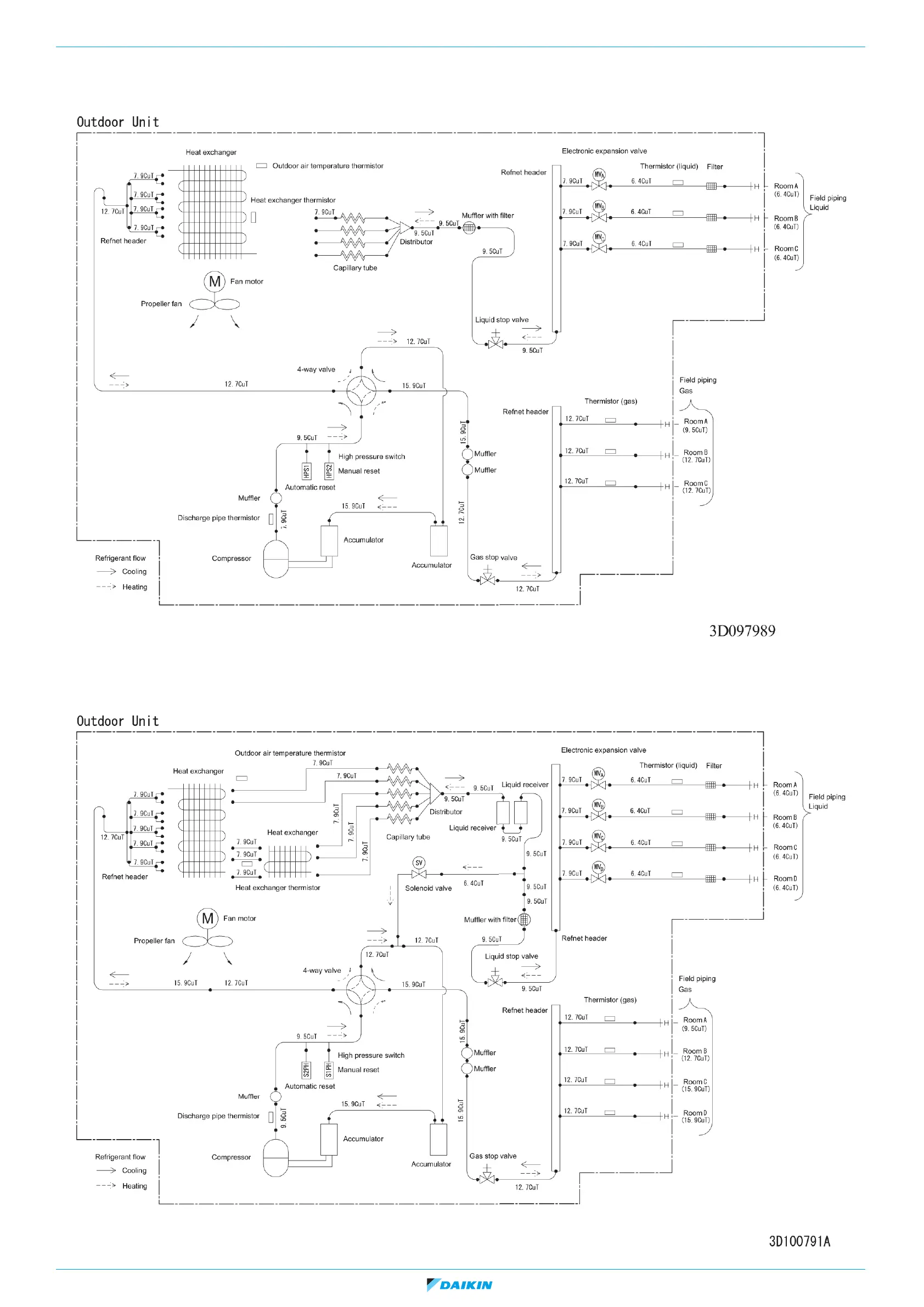 Figure 5-57: Piping diagram - outdoor unit 3MXM40-52M, 3MXM40-52N, 3MXM52N9