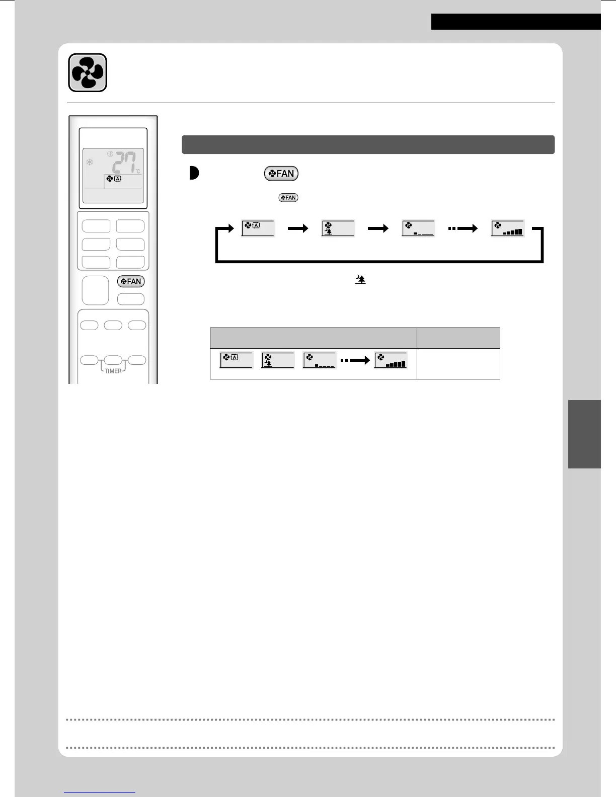 • Se il fl usso d'aria viene impostato su " ", inizia il funzionamento silenzioso e si riduce