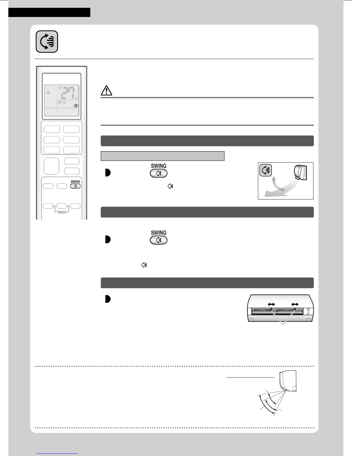 • Χρησιμοποιείτε πάντα ένα τηλεχειριστήριο για να προσαρμόσετε τη γωνία κίνησης του πτερυγίου.