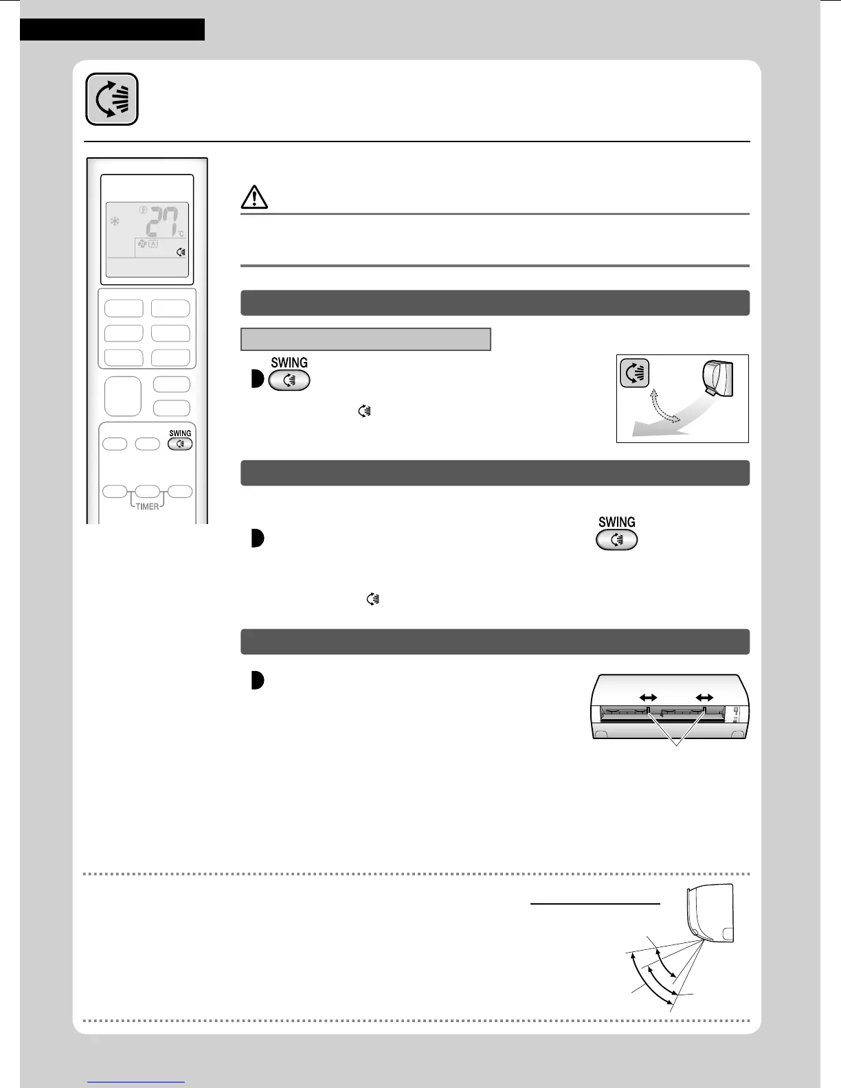 • Kanat açılarını ayarlamak için daima uzaktan kumandayı kullanın. Kanadı elinizle zorla hareket ettirmeye
