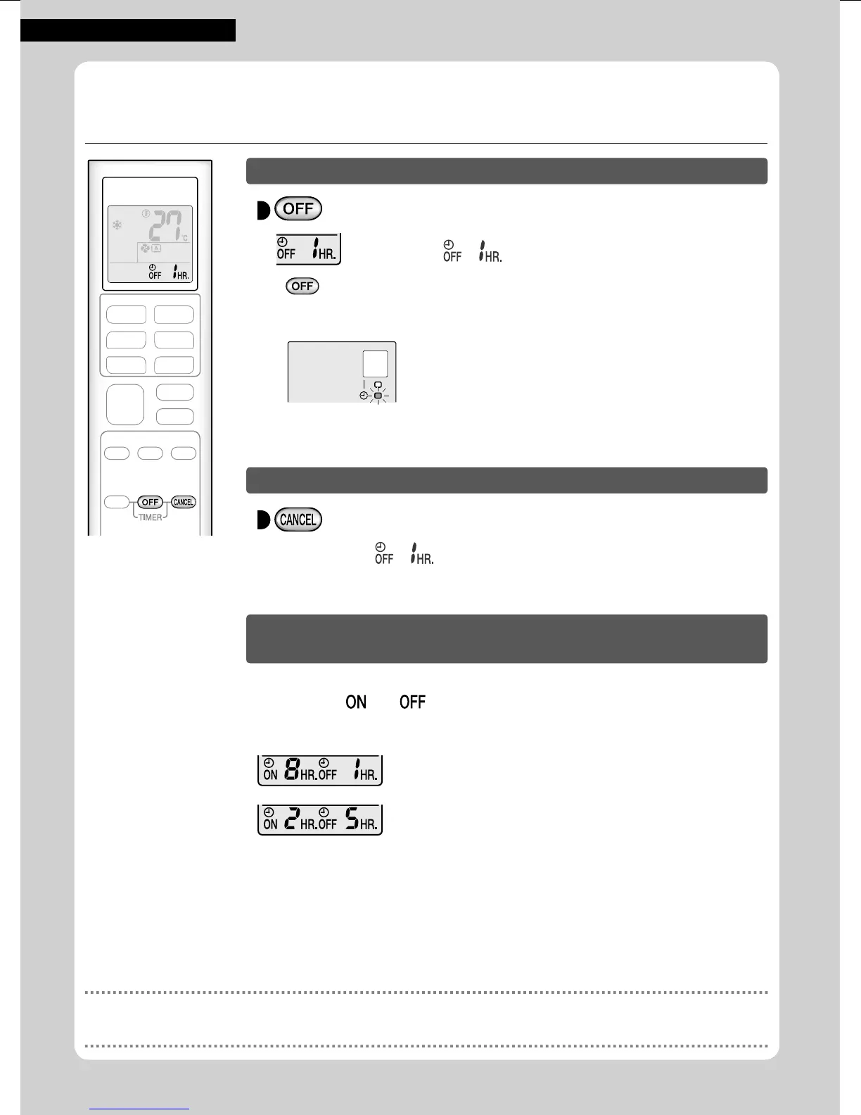 • KAPATMA ZAMANLAYICI ayarlandığında klima, uyurken için aşırı soğutmayı (ısıtmayı) önlemek üzere sıcaklık ayarını otomatik olarak değiştirir