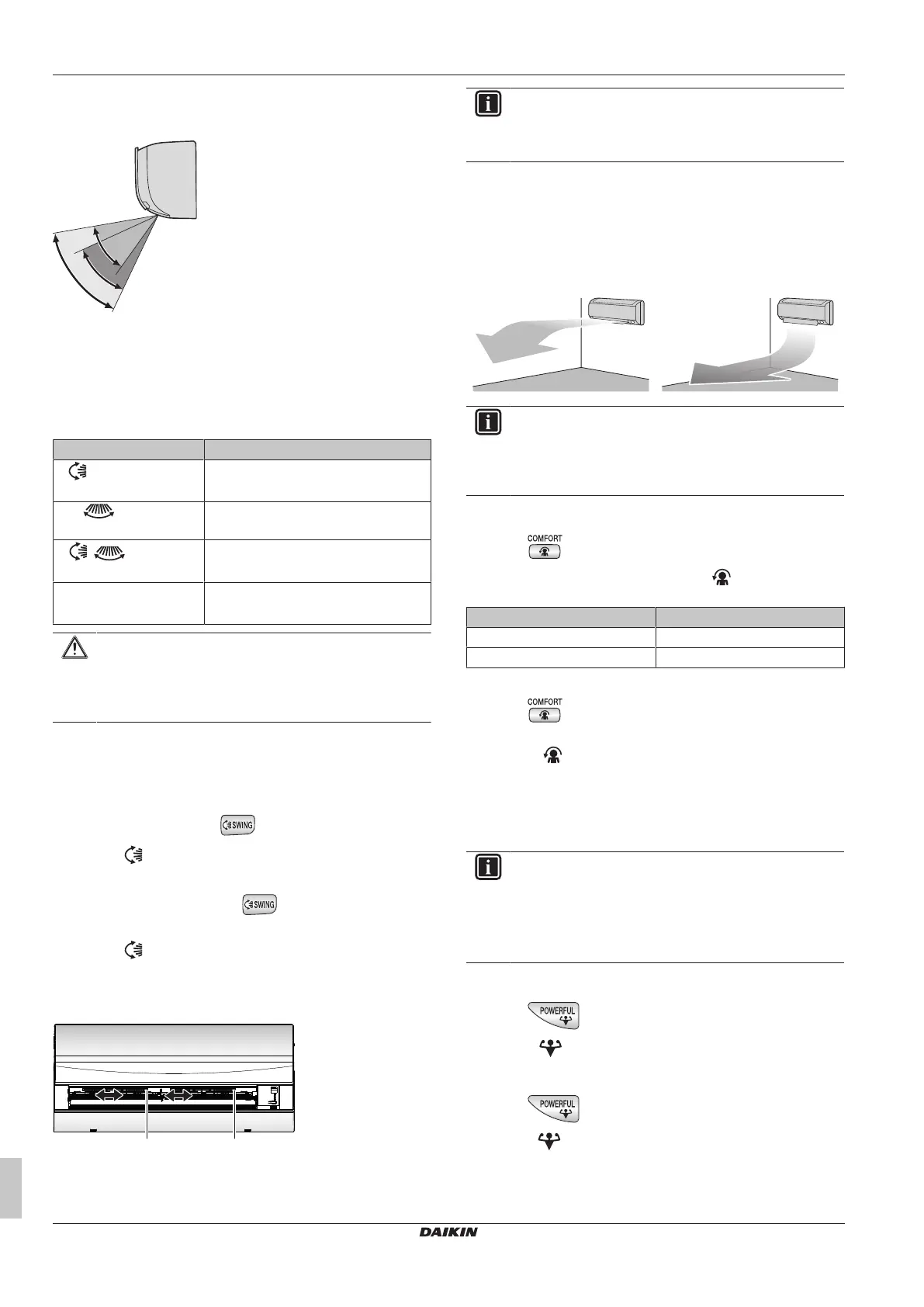If the vertical automatic swing is selected, Comfort airflow