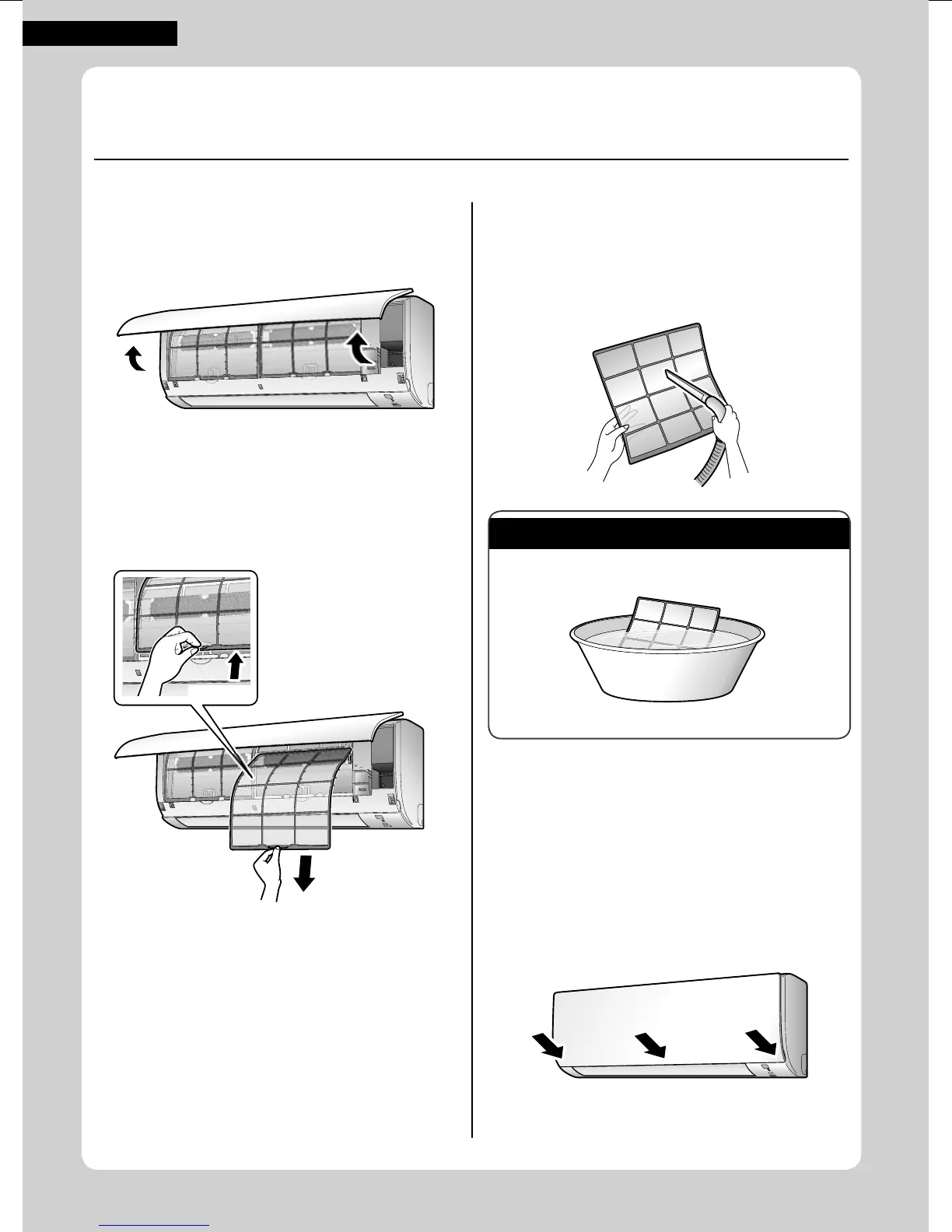 • Lave los fi ltros de aire con detergente neutro disuelto en