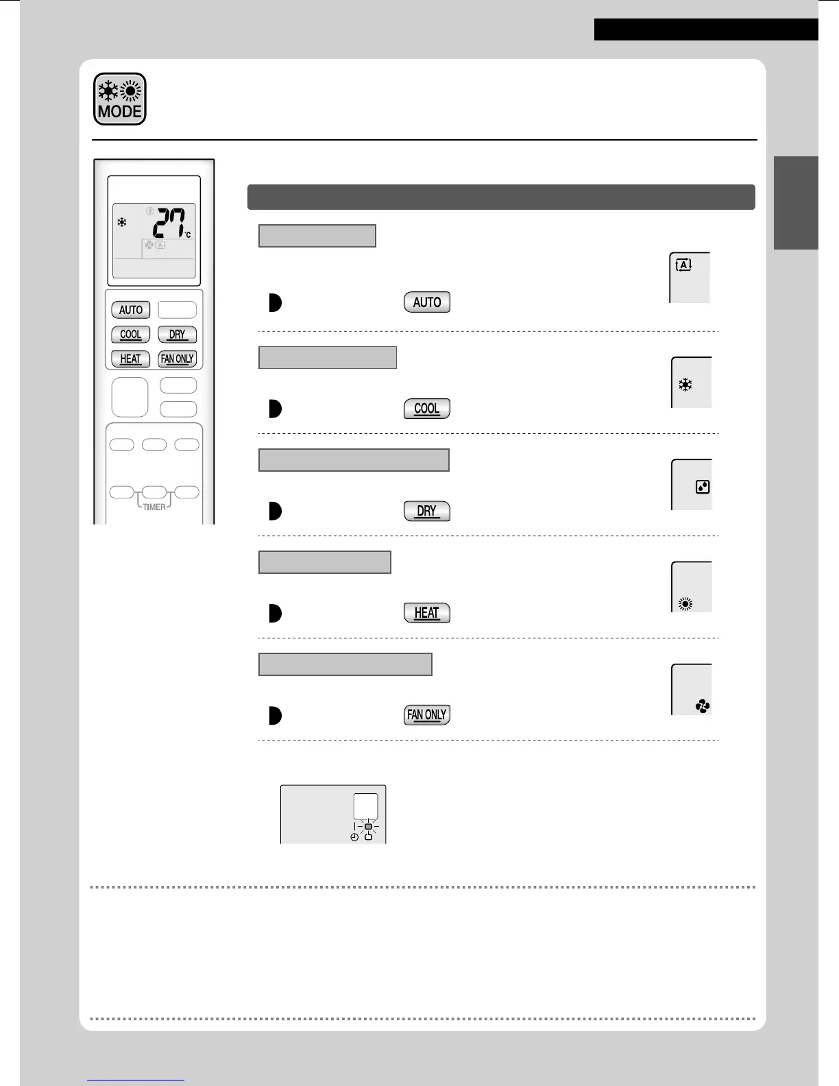 • Im AUTO-Betrieb wählt das System die entsprechende Betriebsart (KÜHLEN oder HEIZEN) auf der Grundlage der Raumtemperatur aus