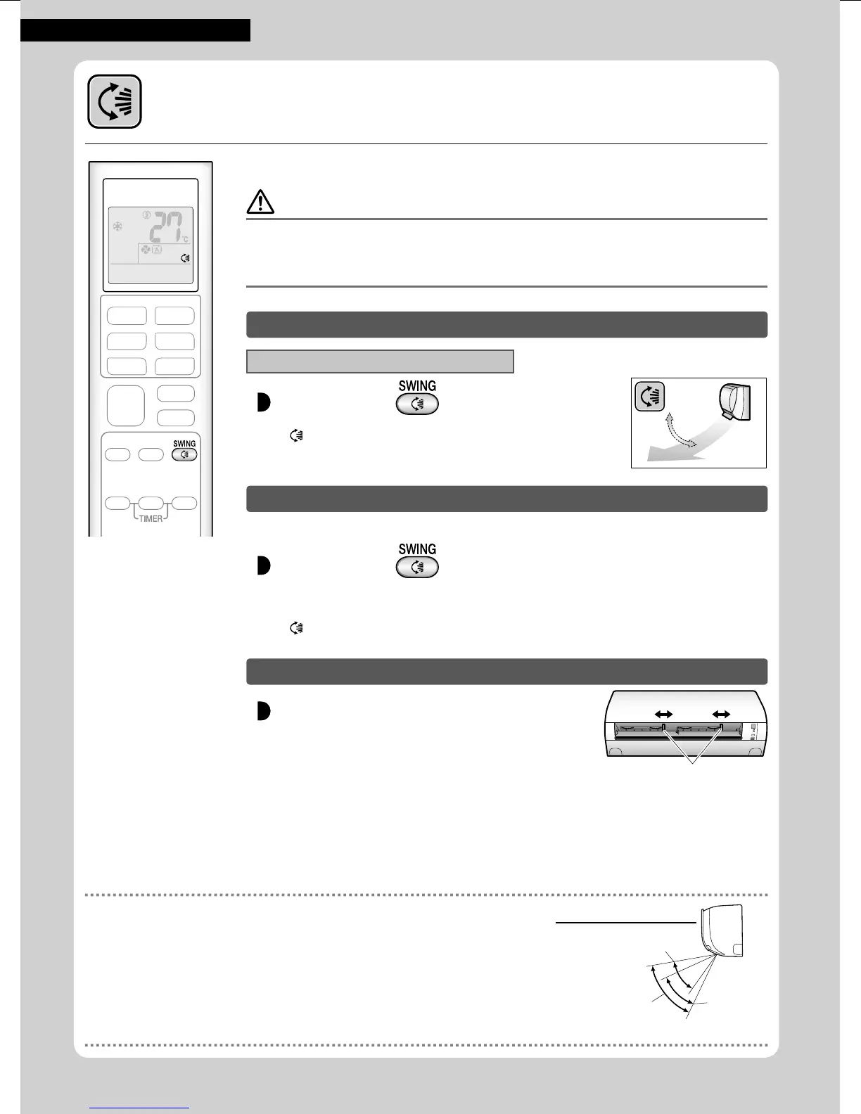 • Verwenden Sie immer eine Fernbedienung, um die Winkel der Klappe einzustellen. Wenn Sie versuchen,