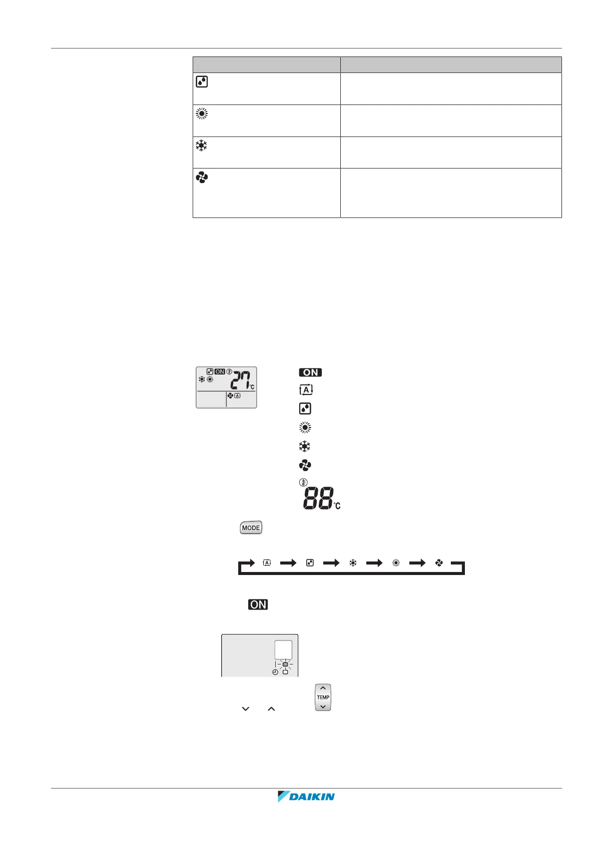 Note: When using drying or fan only mode, you cannot adjust the temperature.