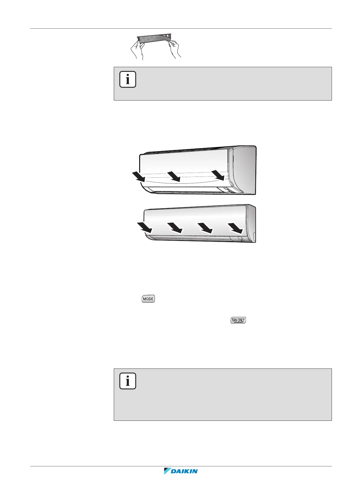 3 Set the mode to fan only by pressing button to dry the inside of the