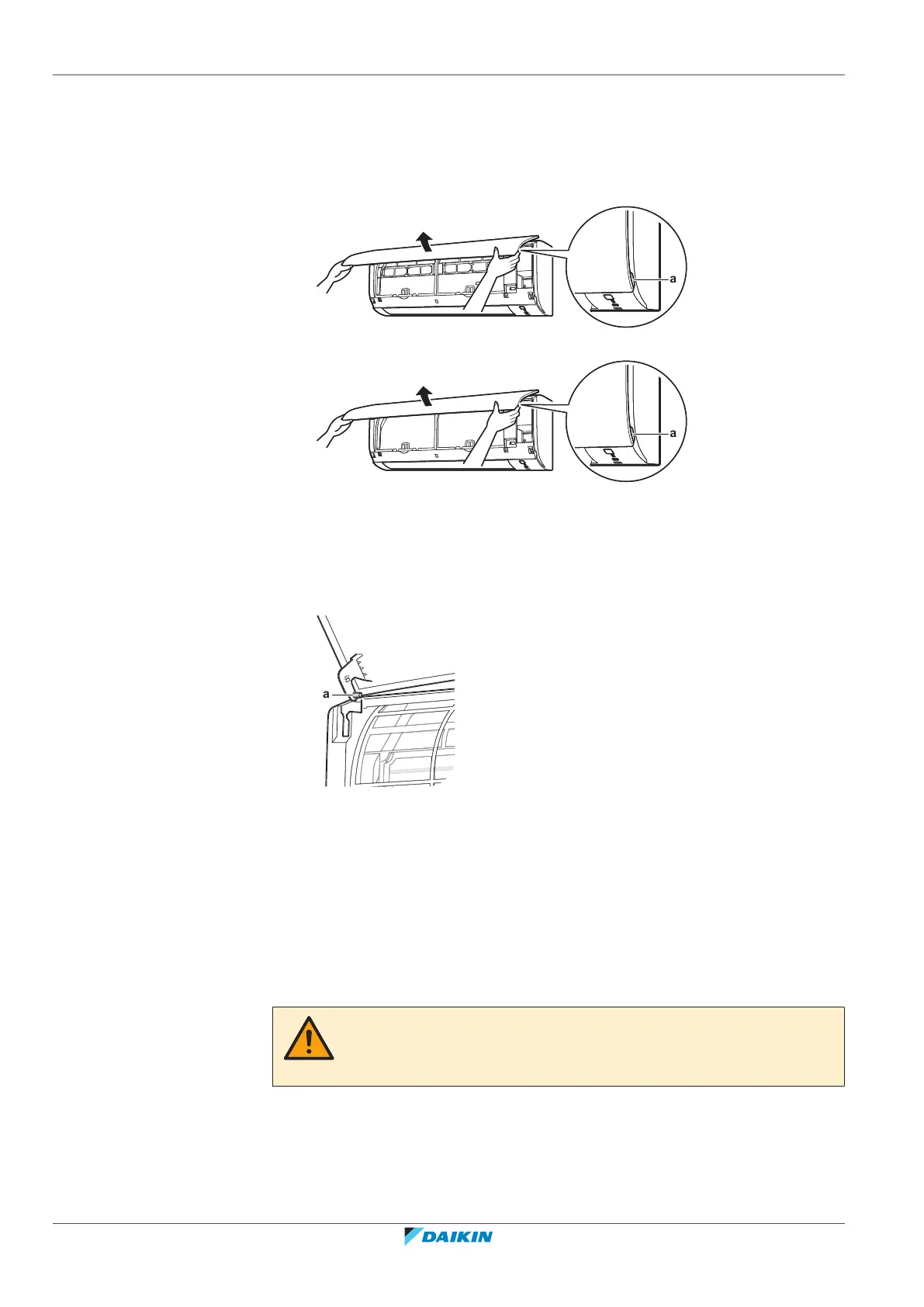3 Push down the 3 upper hooks marked with a symbol with 3 circles.