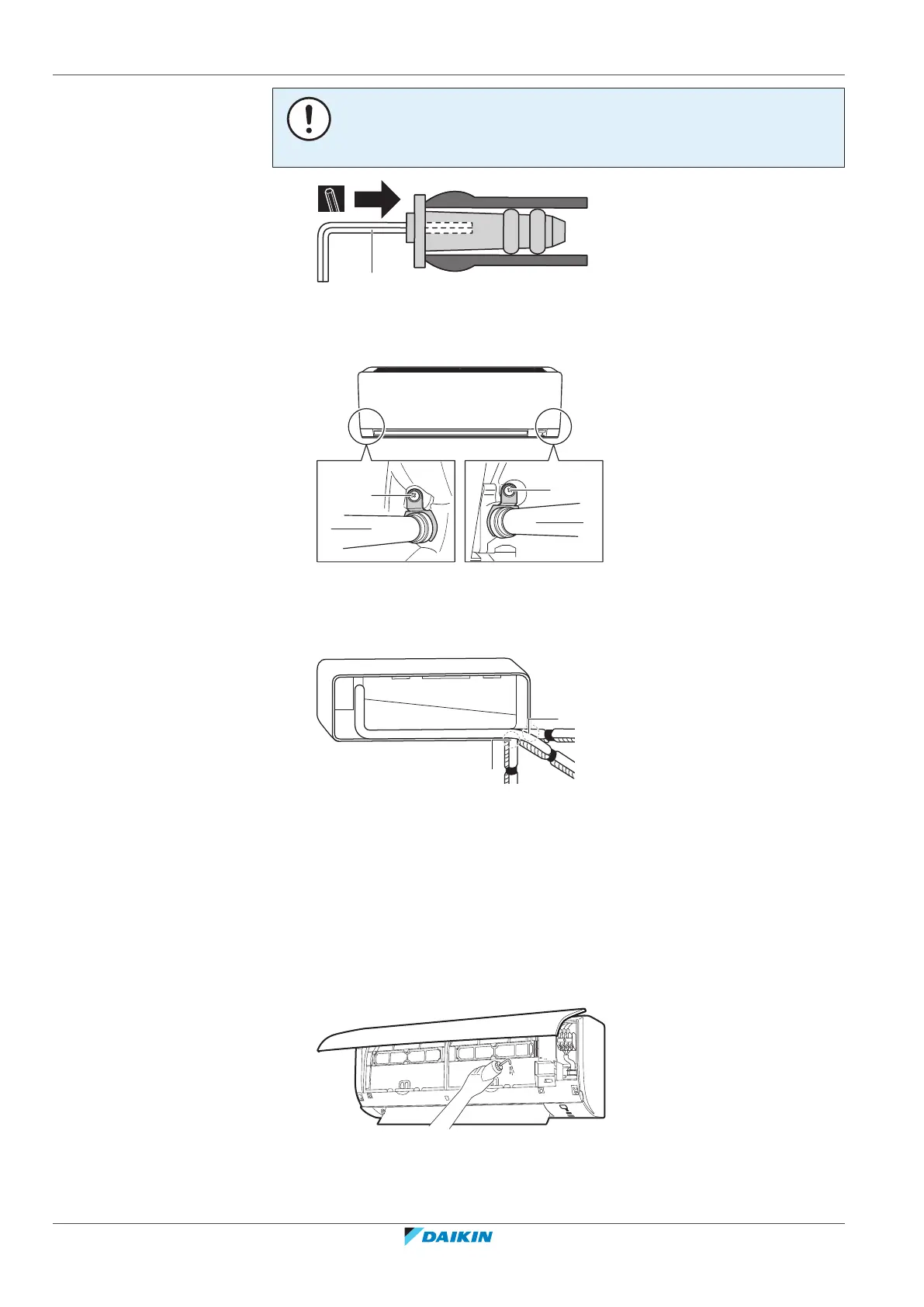 4 Attach the drain hose to the refrigerant piping bottom side using adhesive