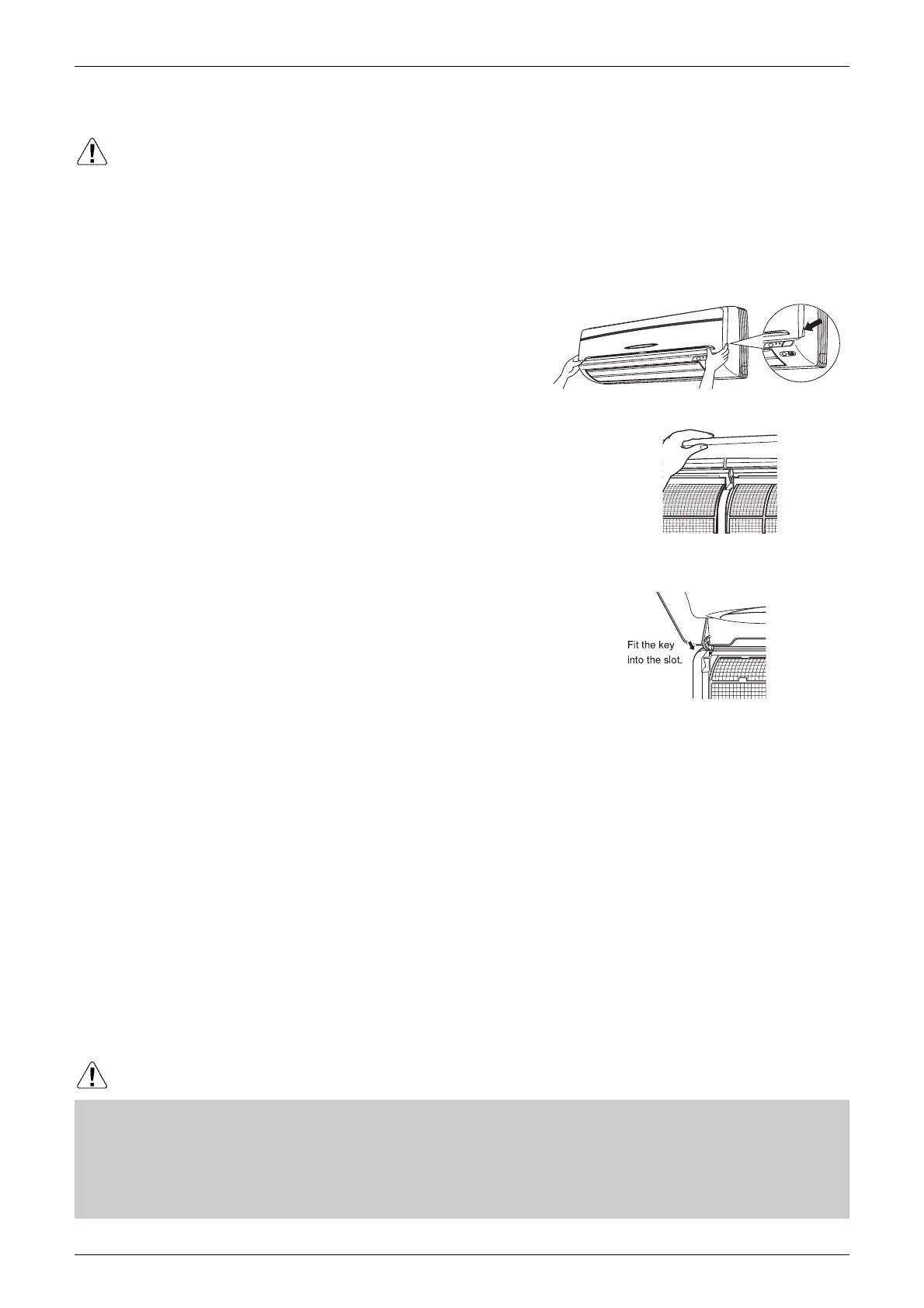 • When removing or attaching the front panel, support the panel securely with hand to prevent it from falling.