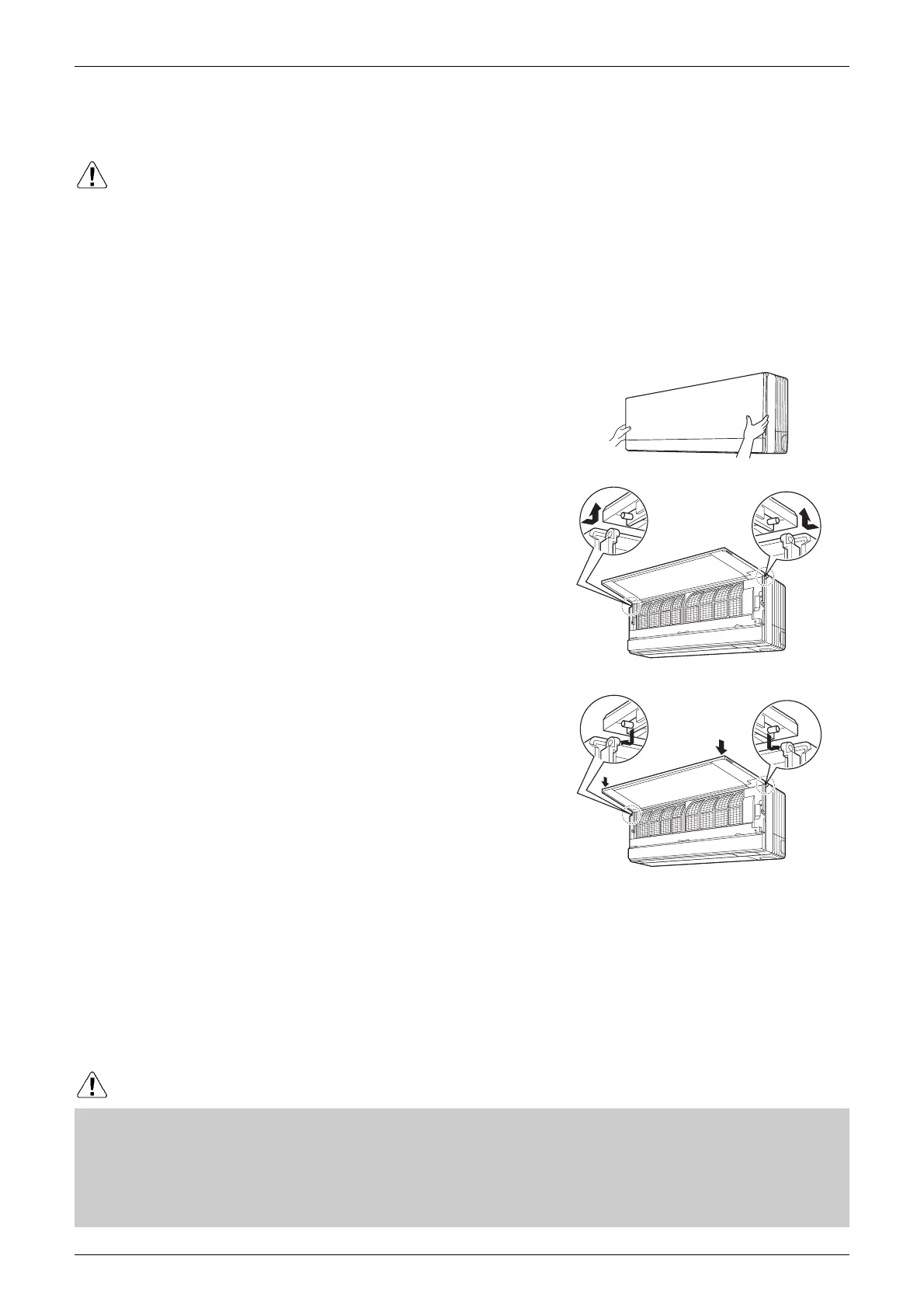 • When removing or attaching the front panel, support the panel securely with hand to prevent it from falling.