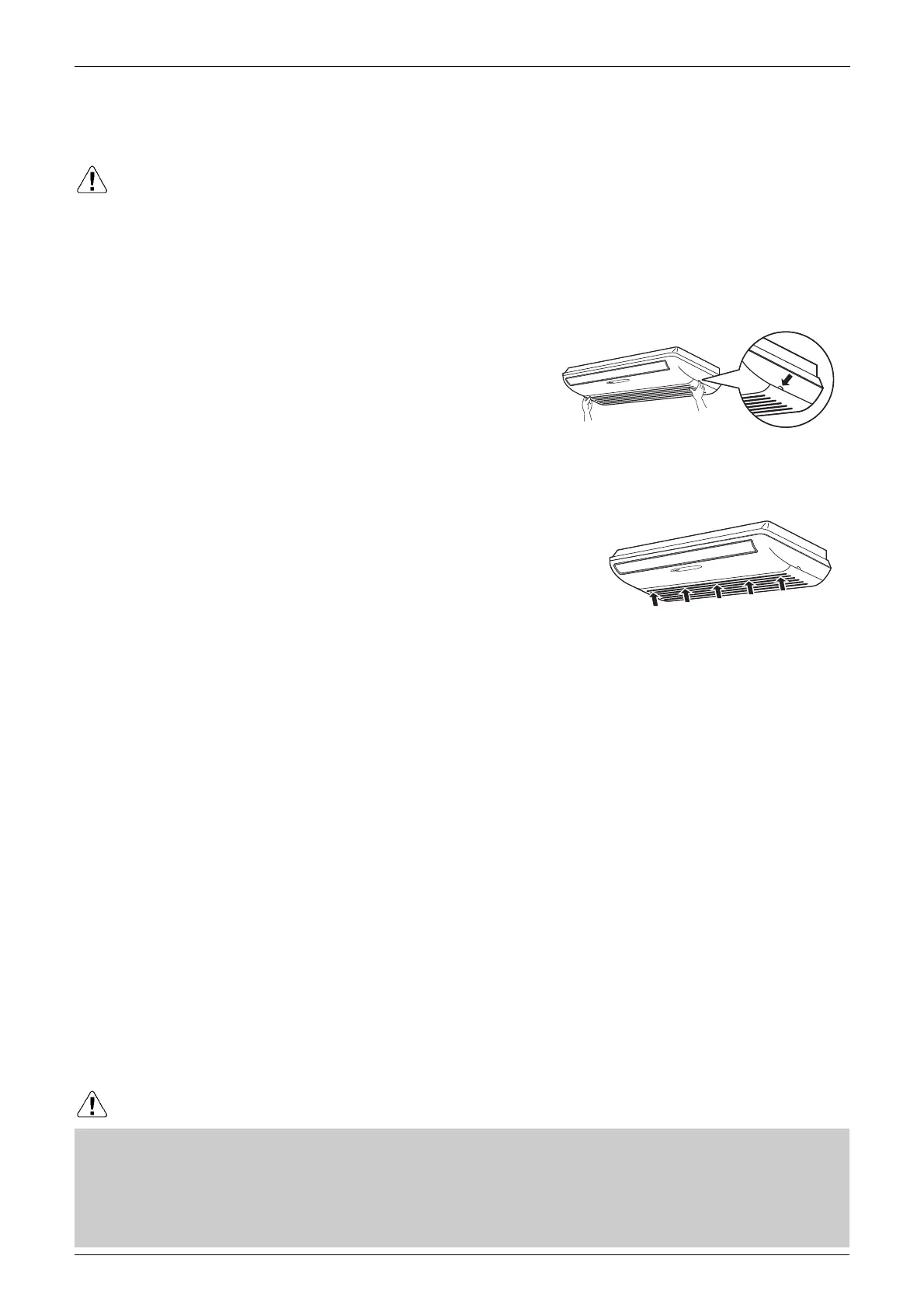 • After cleaning, make sure that the front grille is securely fixed.