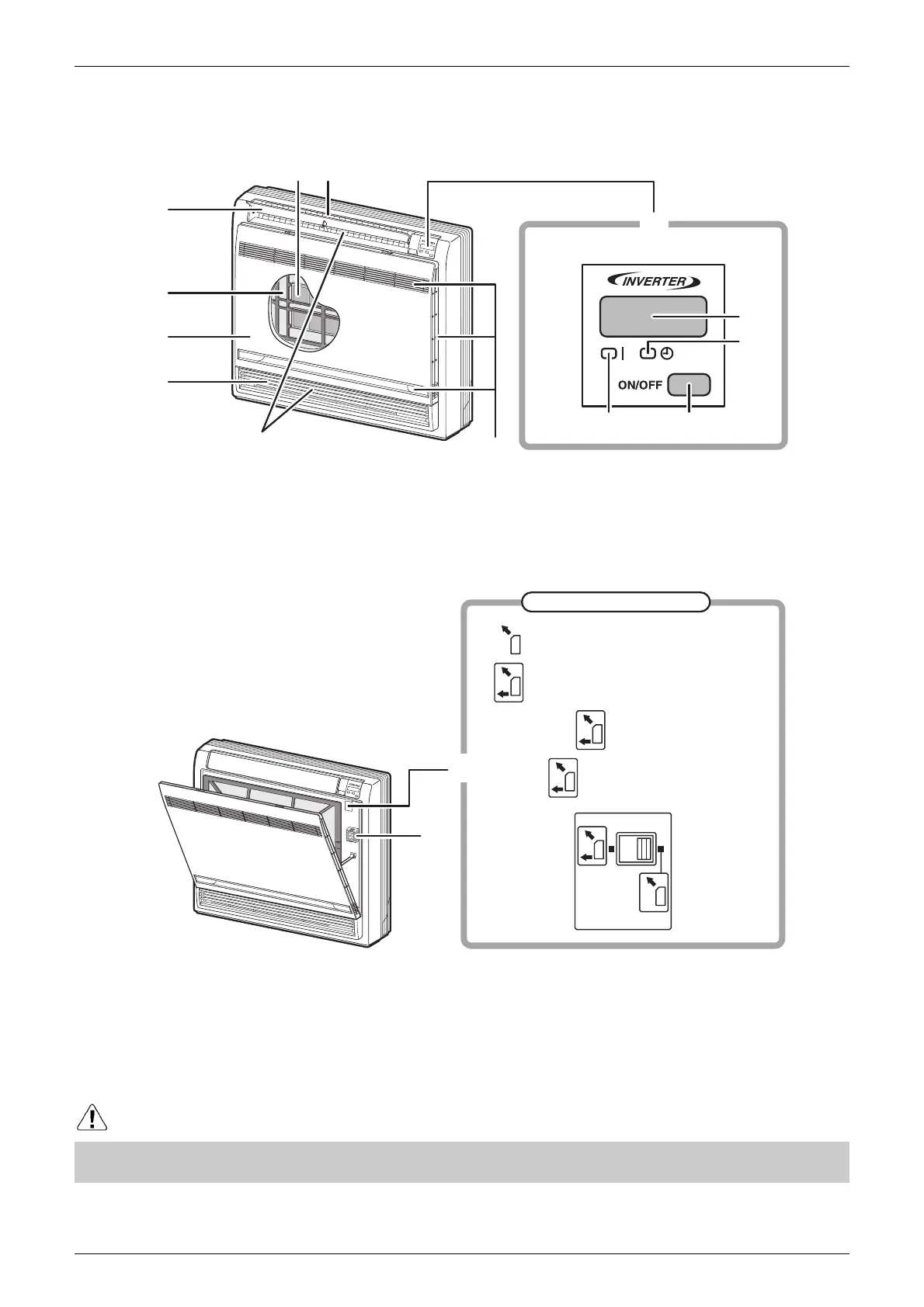 • Before opening the front grille, be sure to stop the operation and turn the breaker OFF.