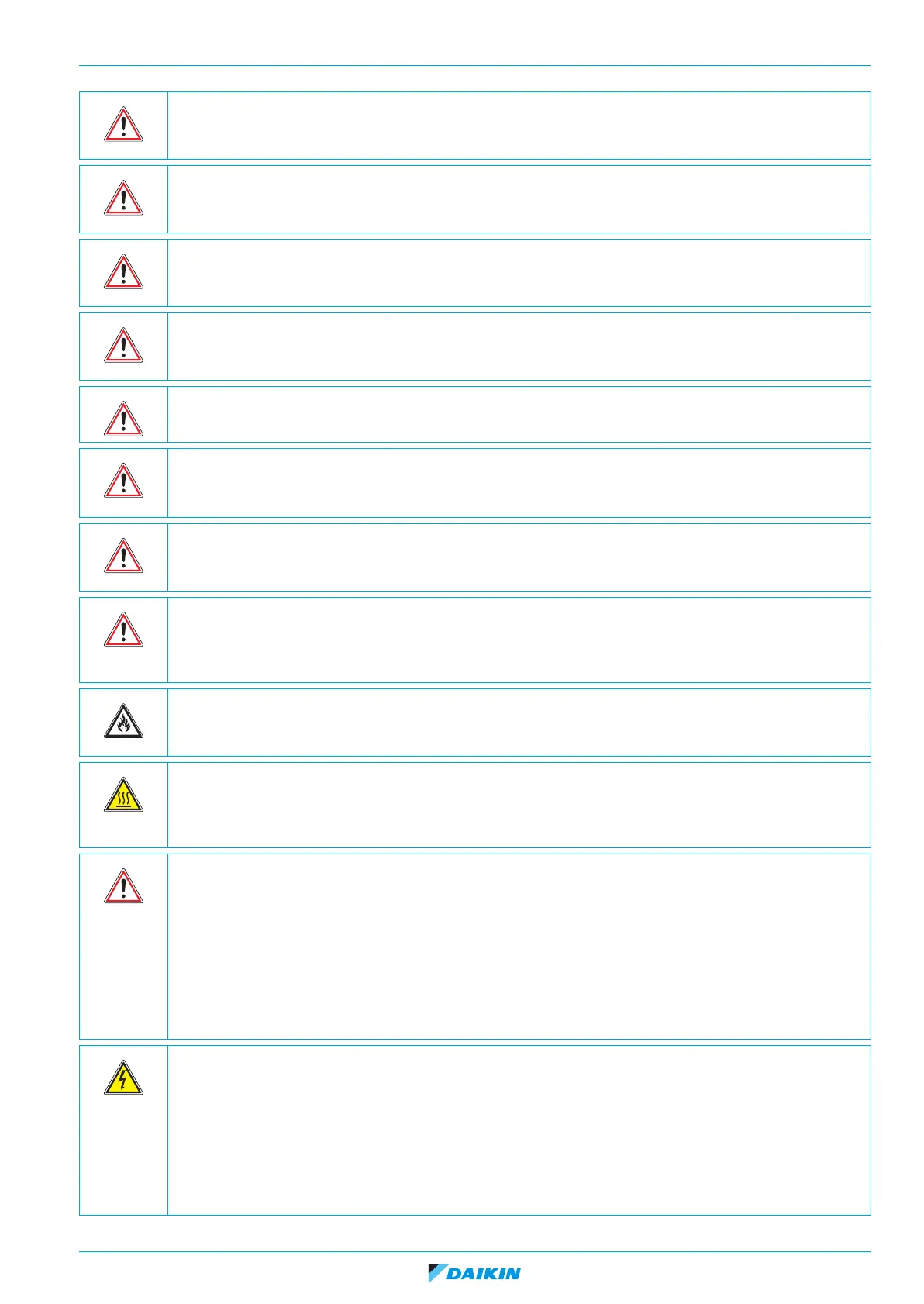• Excessive refrigerant concentrations in a closed room can lead to oxygen deficiency.