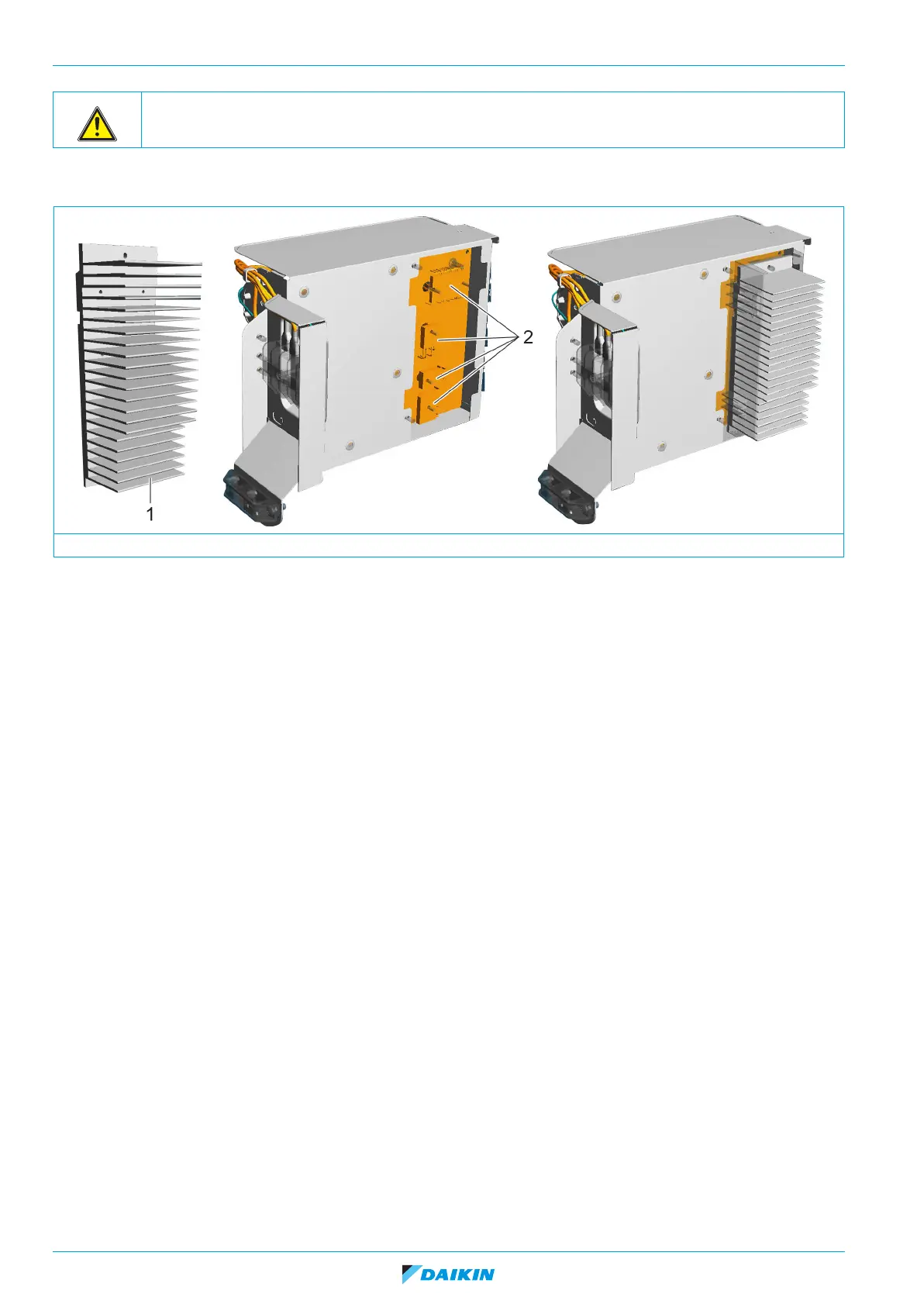 1. Attach new heat conductive paste (2) before attaching the heat sink (1) to the power electronics.