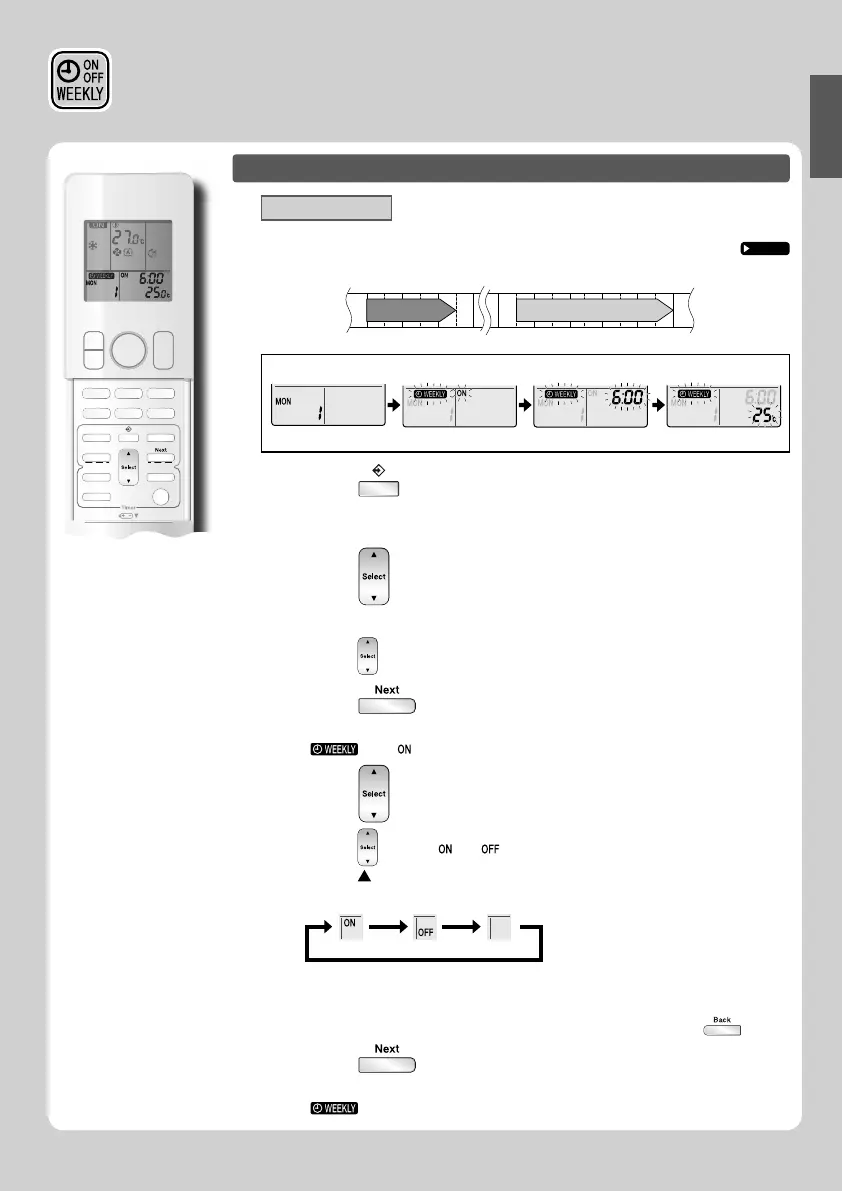 • Make sure the day of the week and time are set. If not, set the day of the week and time.