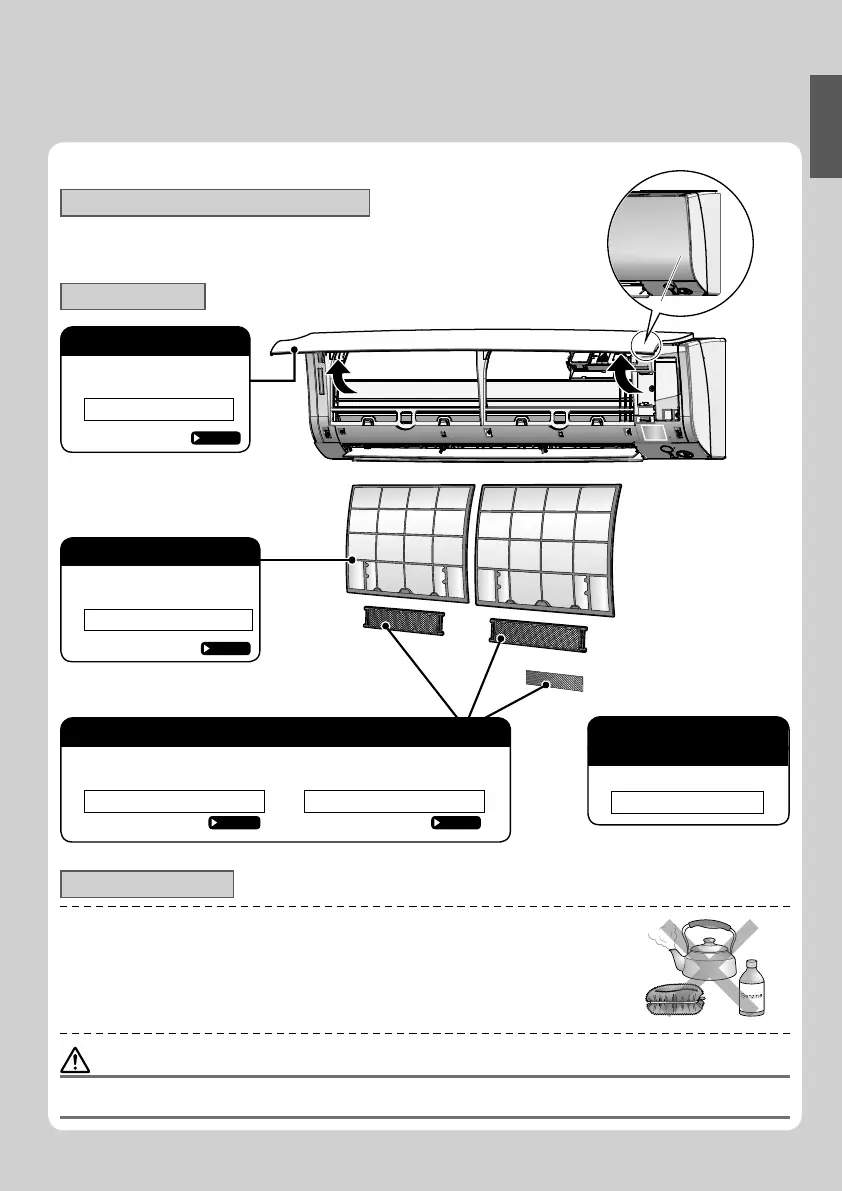• Do not touch the aluminium fi ns of the indoor unit. If you touch those parts, this may cause an injury.