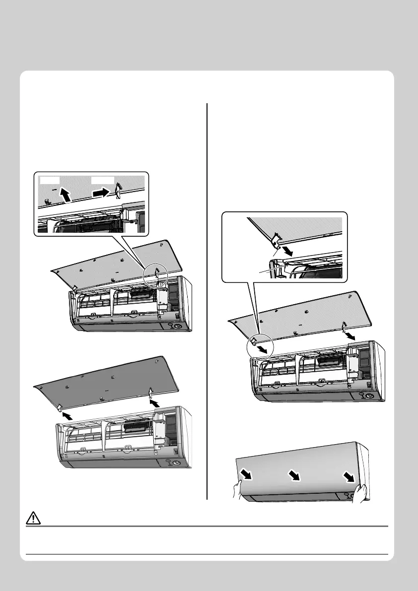 • When removing or attaching the front panel, support the panel securely with hand to prevent it from falling.
