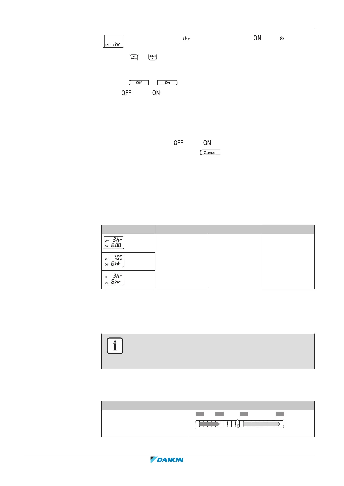 Result: and/or and the set time are displayed on the LCD. The Daikin eye