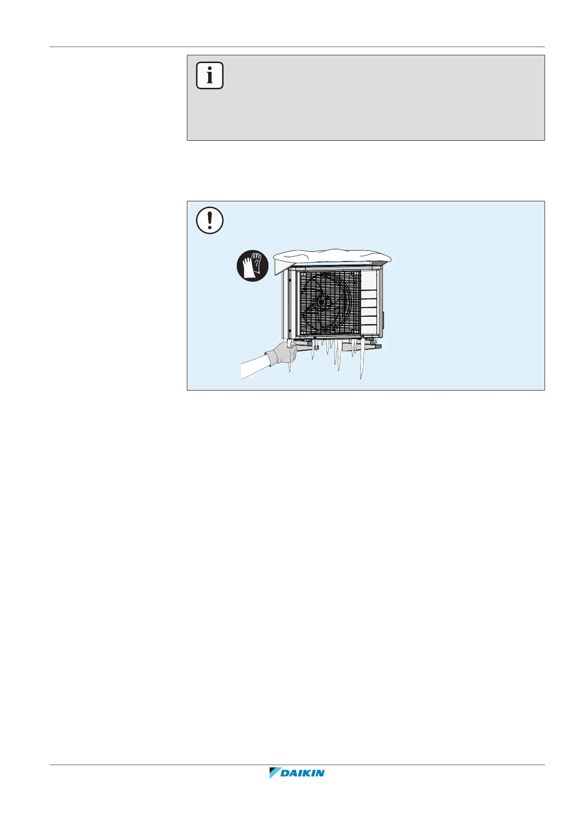 Remove any icicles on the outdoor unit. Use gloves to avoid injury and damage to the