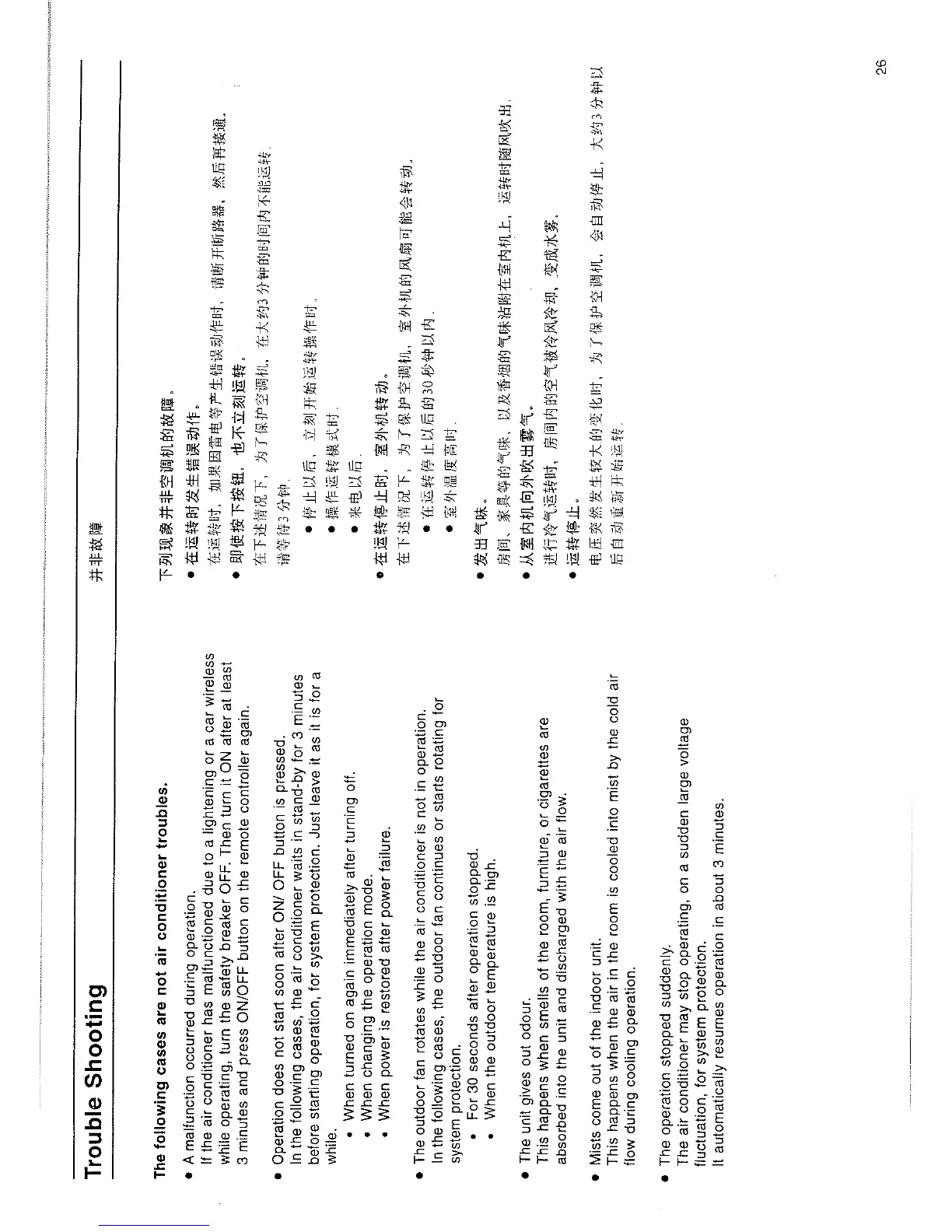 Daikin FTY25FV1C - Trouble Shooting Guide