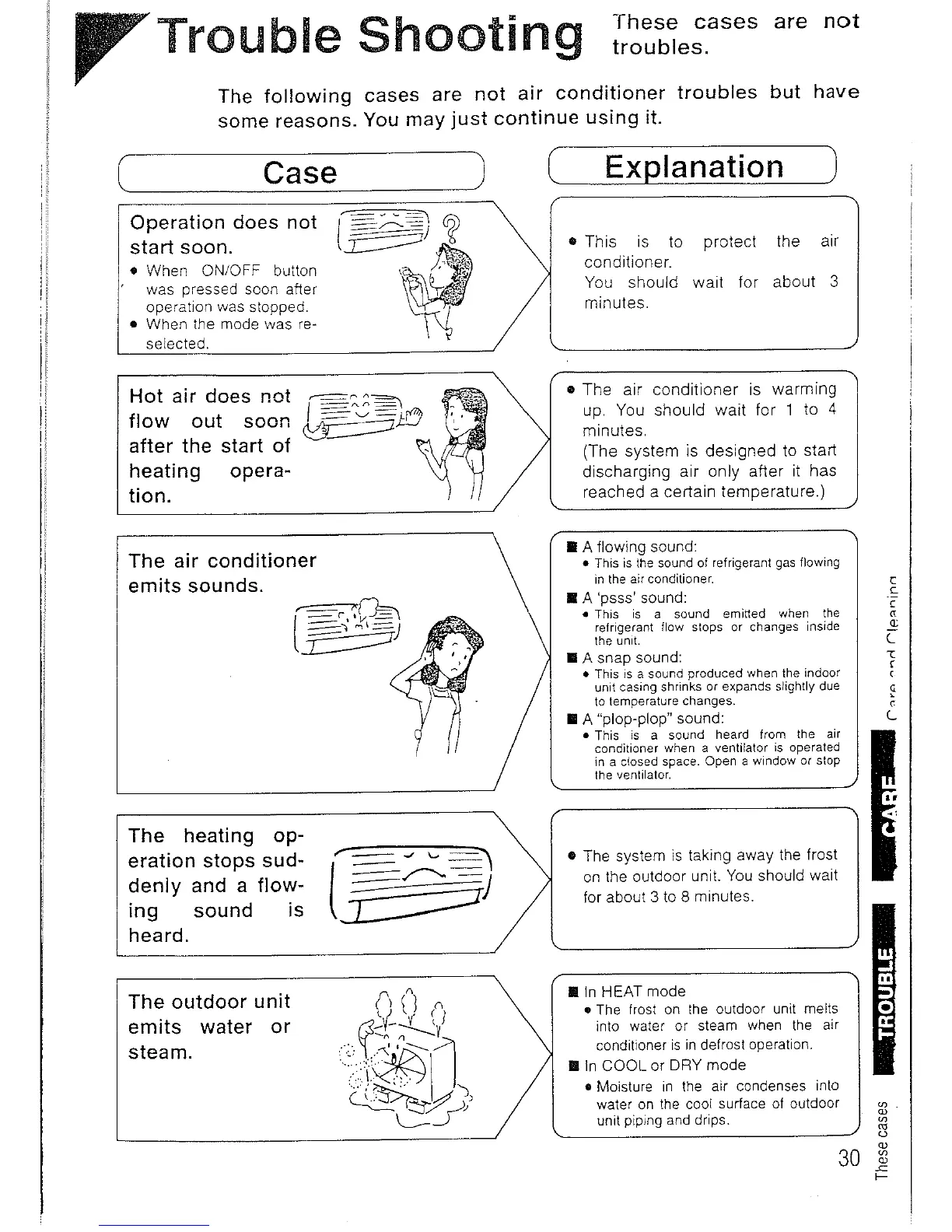 Daikin FTY50GV1A - Troubleshooting: Non-Trouble Cases; Delayed Operation Start; Delayed Hot Air Flow; Unit Sounds Explained