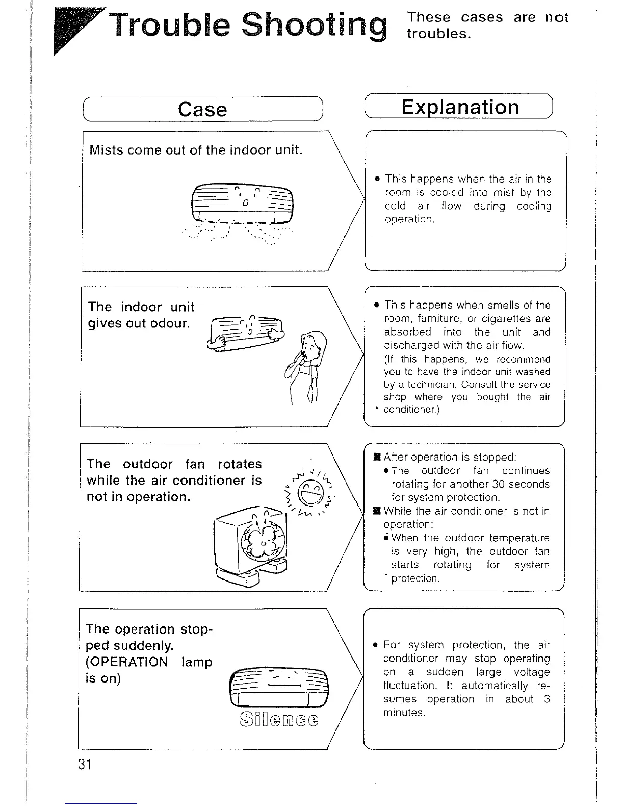 Daikin FTY50GV1A - Troubleshooting: More Non-Trouble Cases; Mists from Indoor Unit; Indoor Unit Odour; Outdoor Fan Rotation When Off