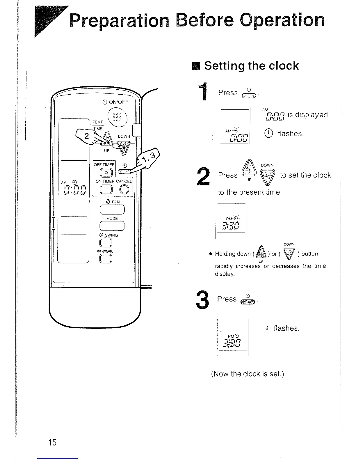 Daikin FTY60GV1A - System Clock Setting Procedure; Setting the Current Time on the Remote