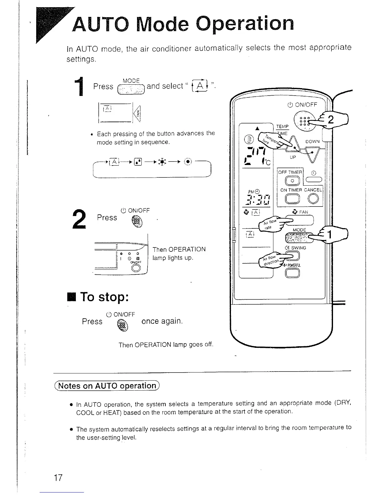 Daikin FTY60GV1A - AUTO Mode Operation Guide; Starting, Stopping, and Functionality of AUTO Mode