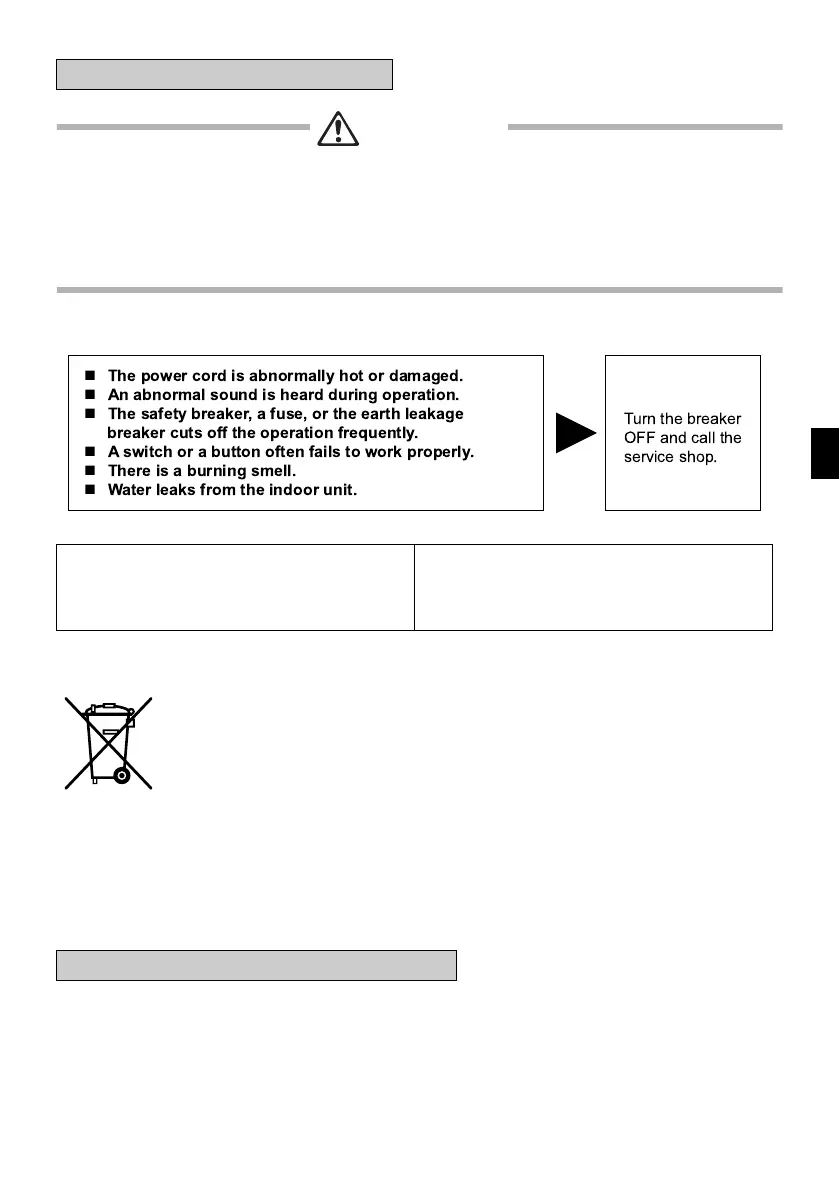 When an abnormality (such as a burning smell) occurs, stop operation and turn the breaker OFF.