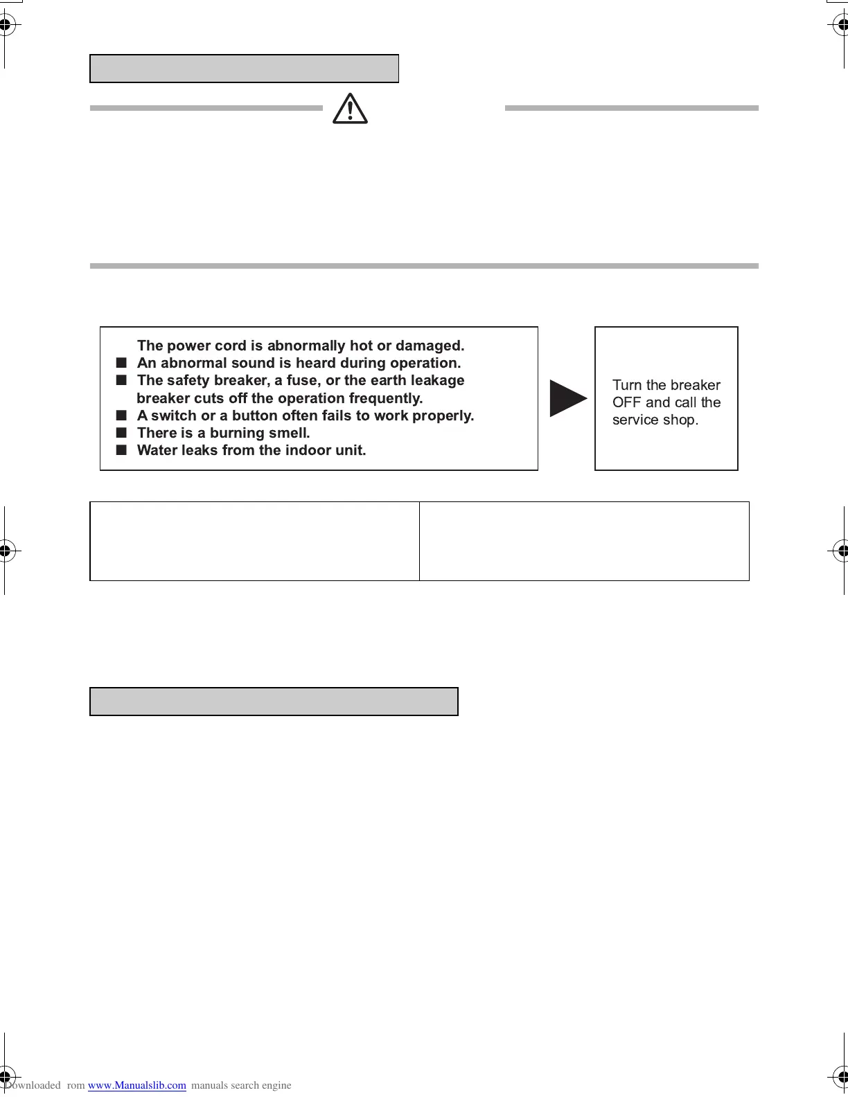 Continued operation in an abnormal condition may result in troubles, electric shocks or fire.