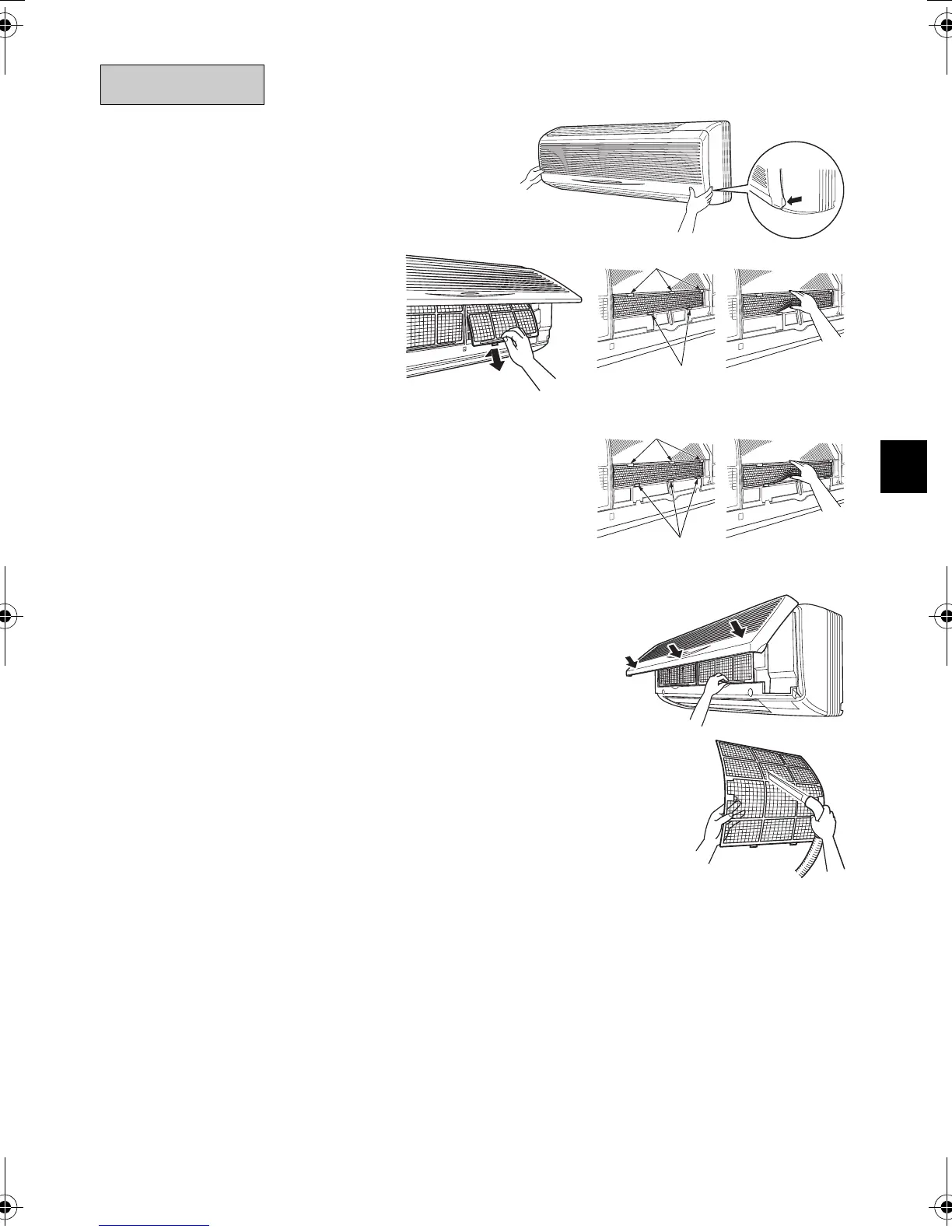 Wash the air filters with water or clean them with vacuum cleaner.