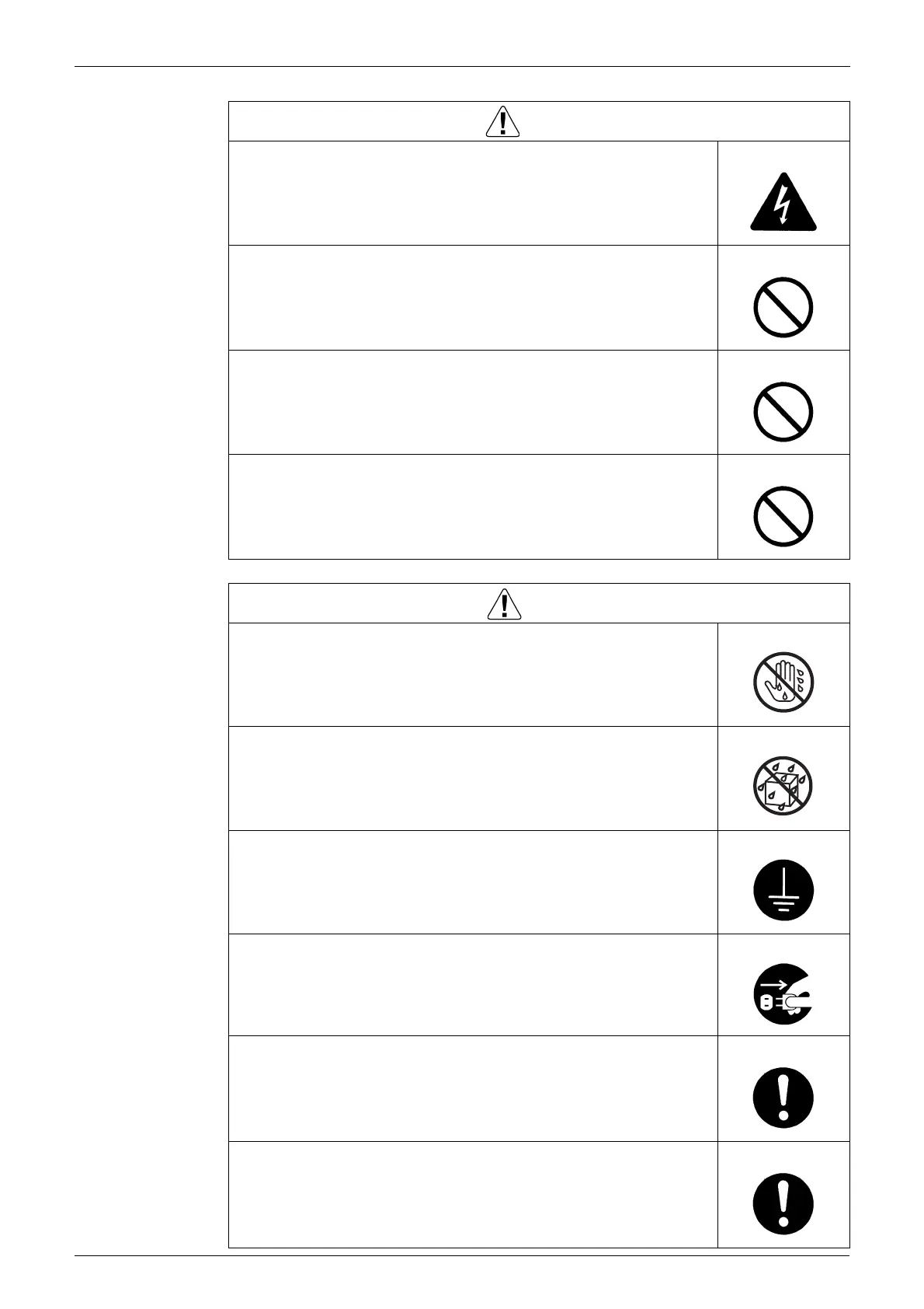 Working on the equipment with wet hands may cause an electrical shock.