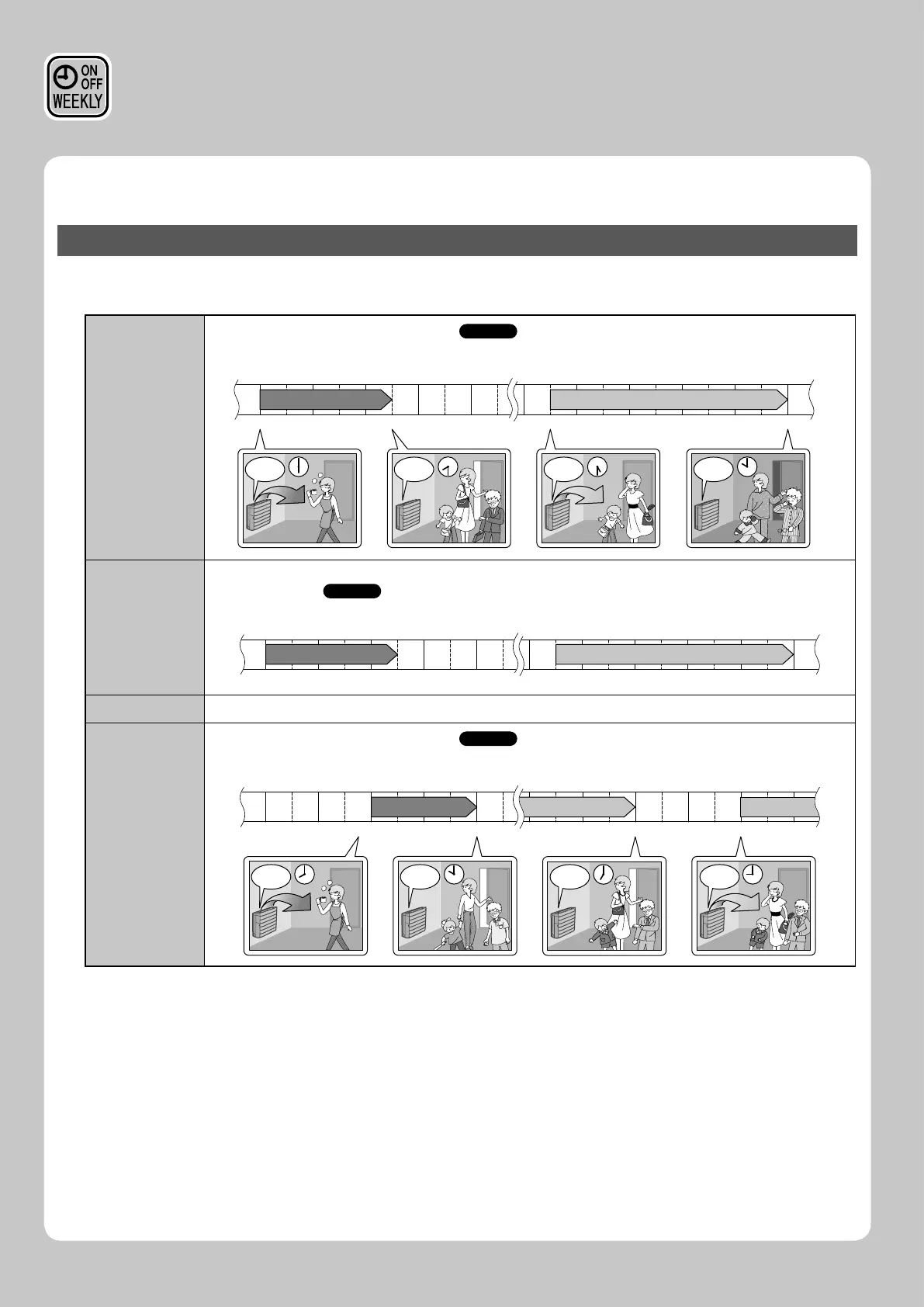 changes. Furthermore, by using OFF-OFF-OFF-OFF settings, only the turn off time of each day can be set. This will turn
