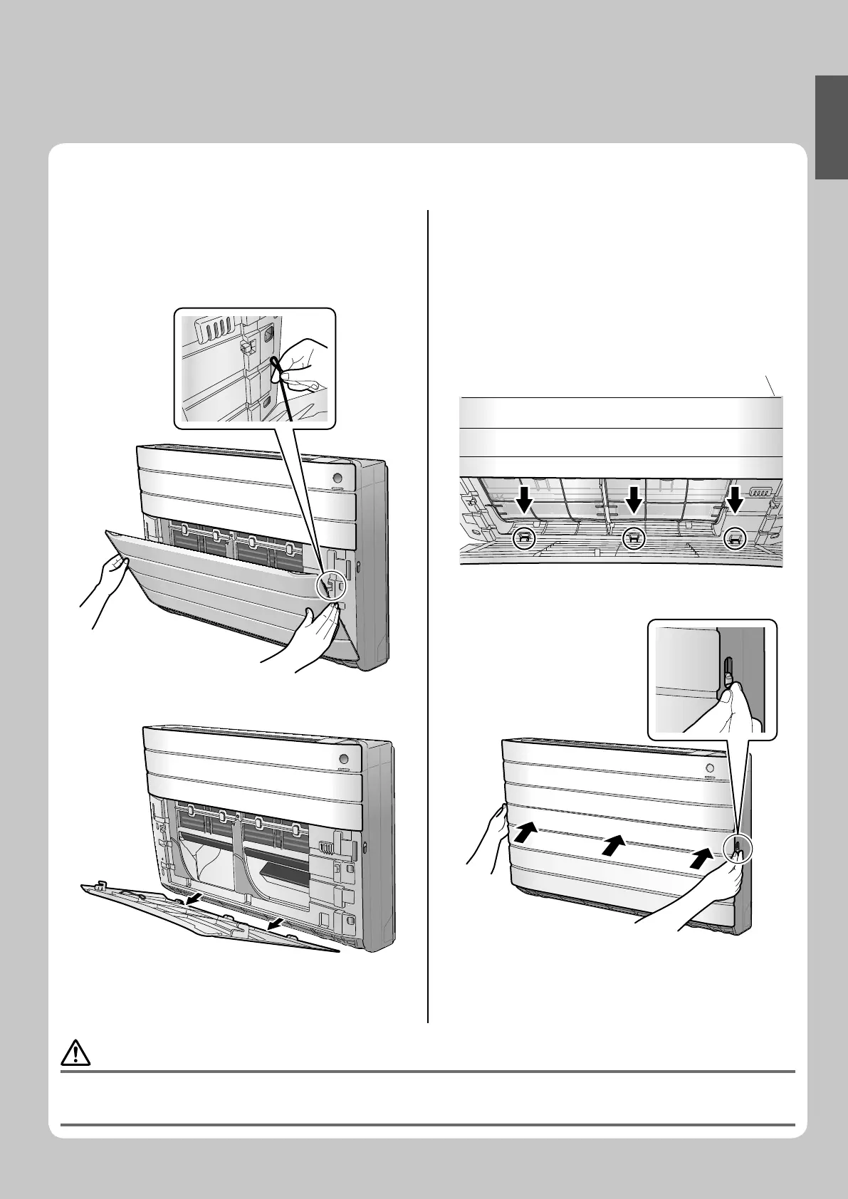 When removing or attaching the front panel, support the panel securely with hand to prevent it from falling.