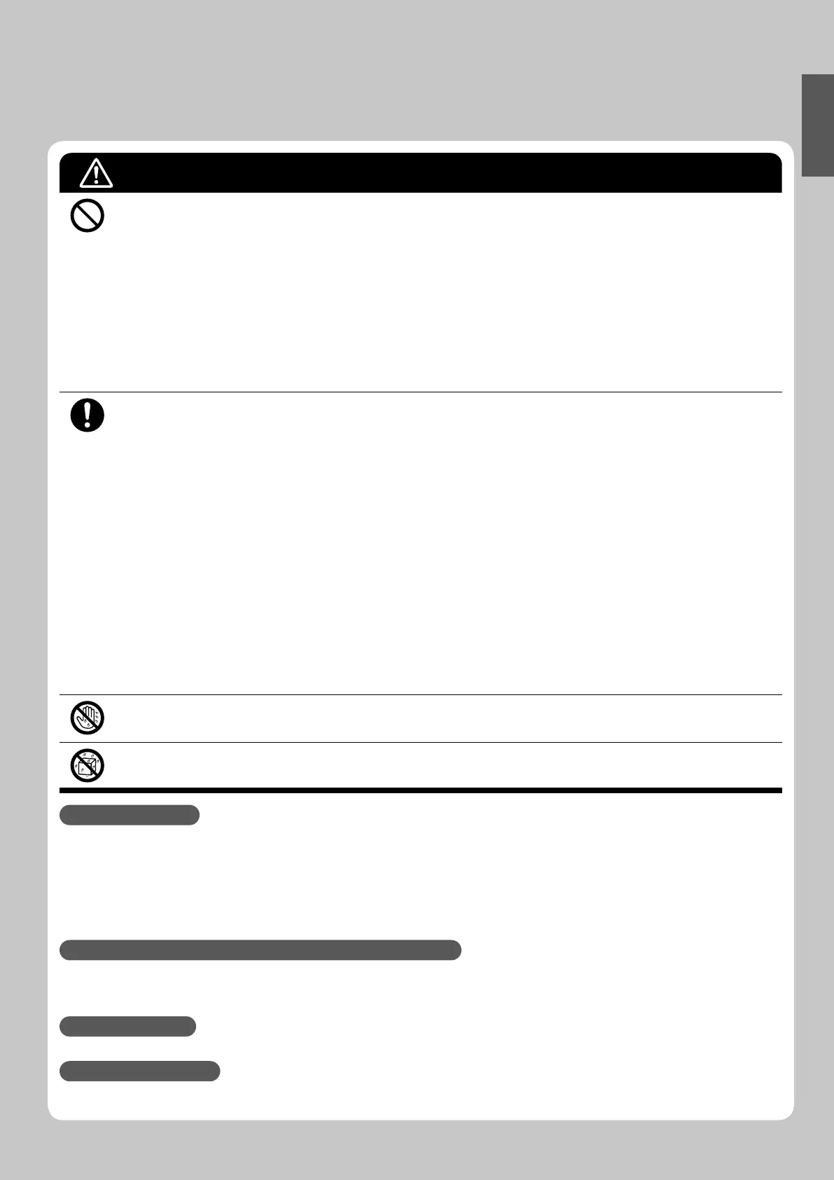 Do not place water containers (vases etc.) above the unit, as this may result in electric shocks or re hazards.