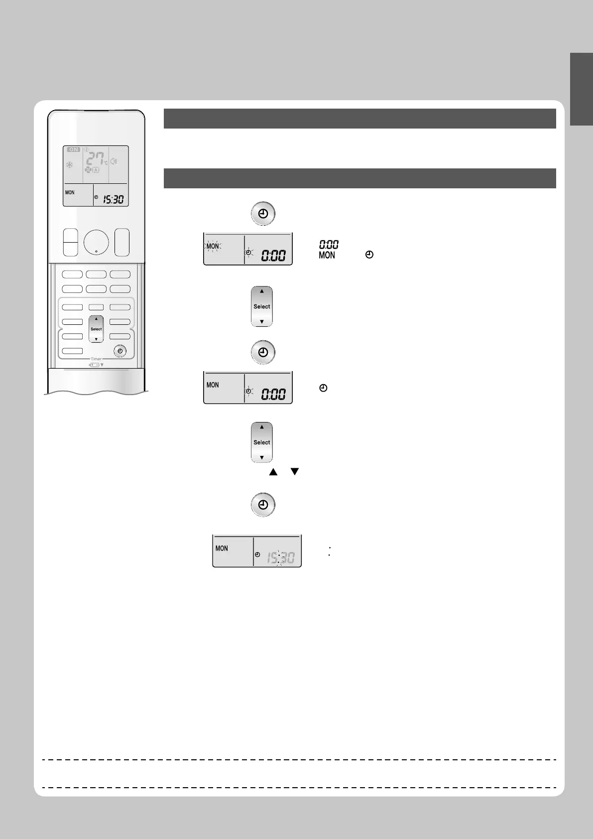 If the indoor unit’s internal clock is not set to the correct time, the ON TIMER, OFF TIMER and WEEKLY TIMER will not operate punctually.•