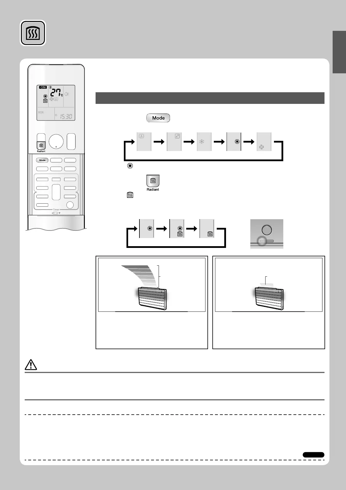 The RADIANT operation uses the auto fan speed, so the airfl ow rate cannot be changed.•