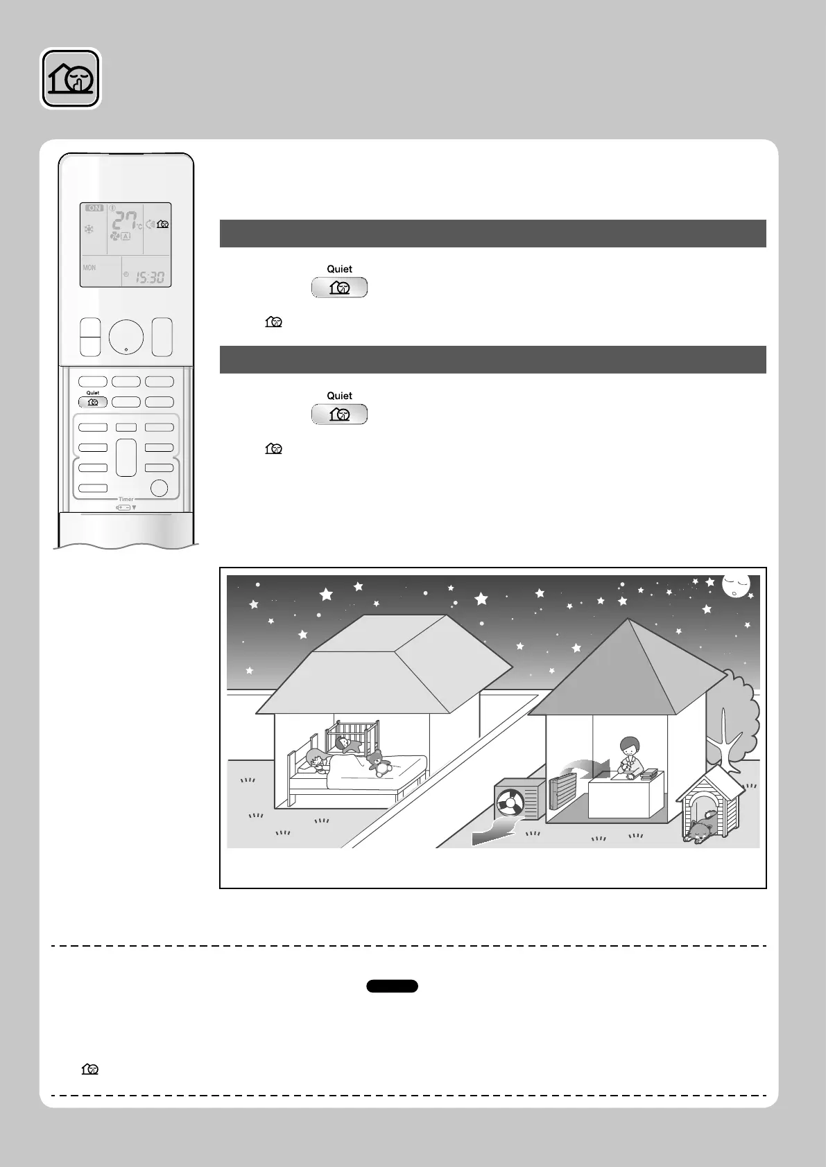 OUTDOOR UNIT QUIET operation will drop neither the frequency nor fan speed if they have been already dropped low enough.•