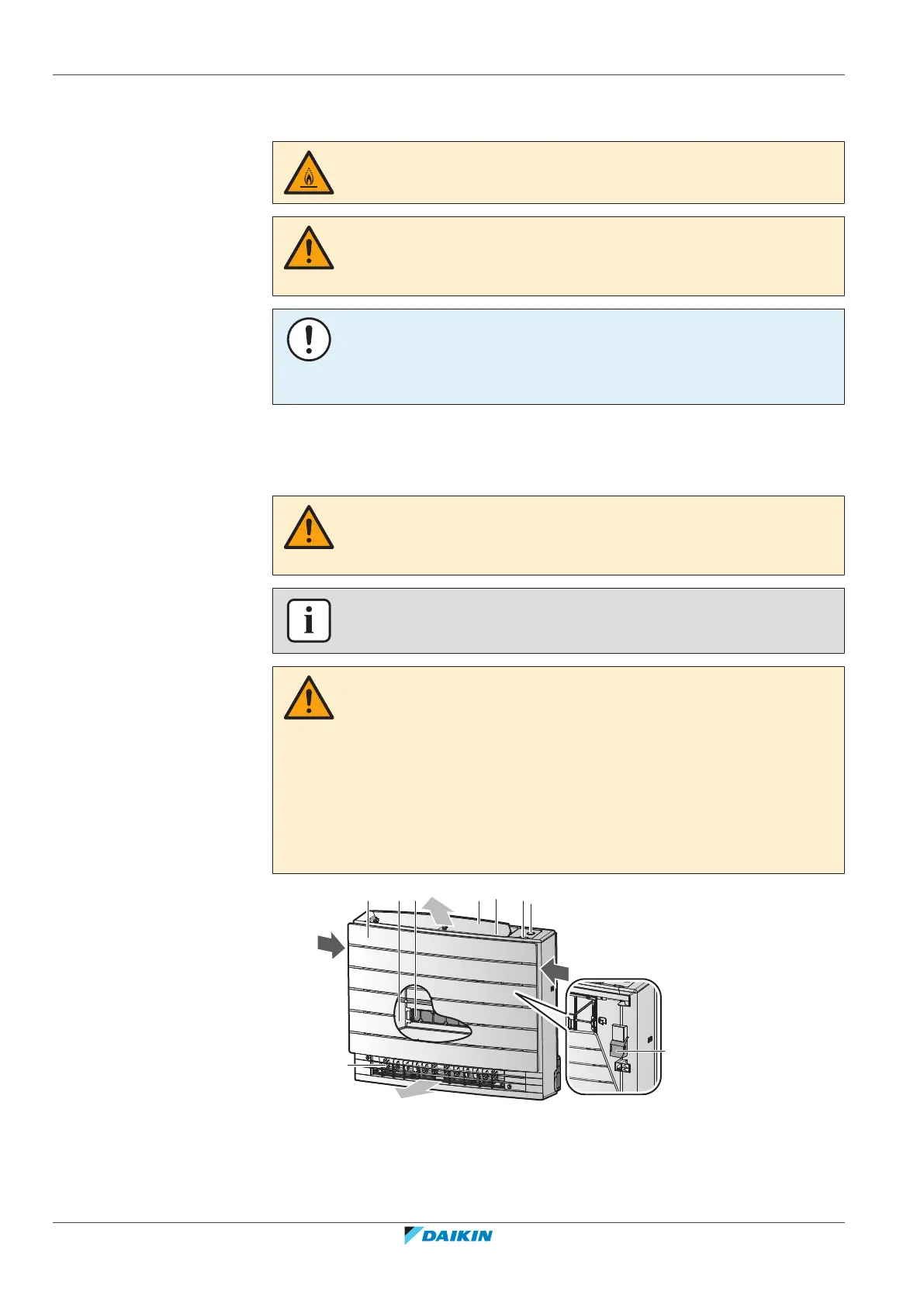 ▪ In case of accidental refrigerant leaks, make sure there are no naked flames. The